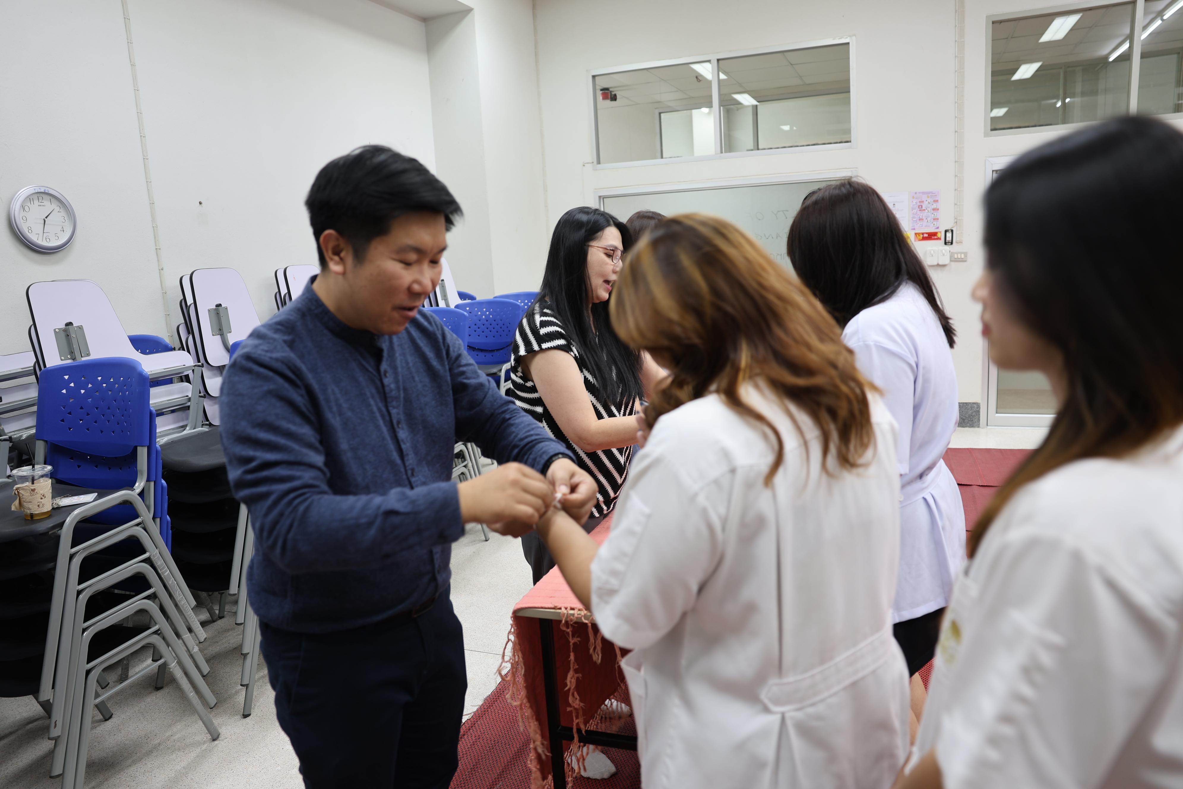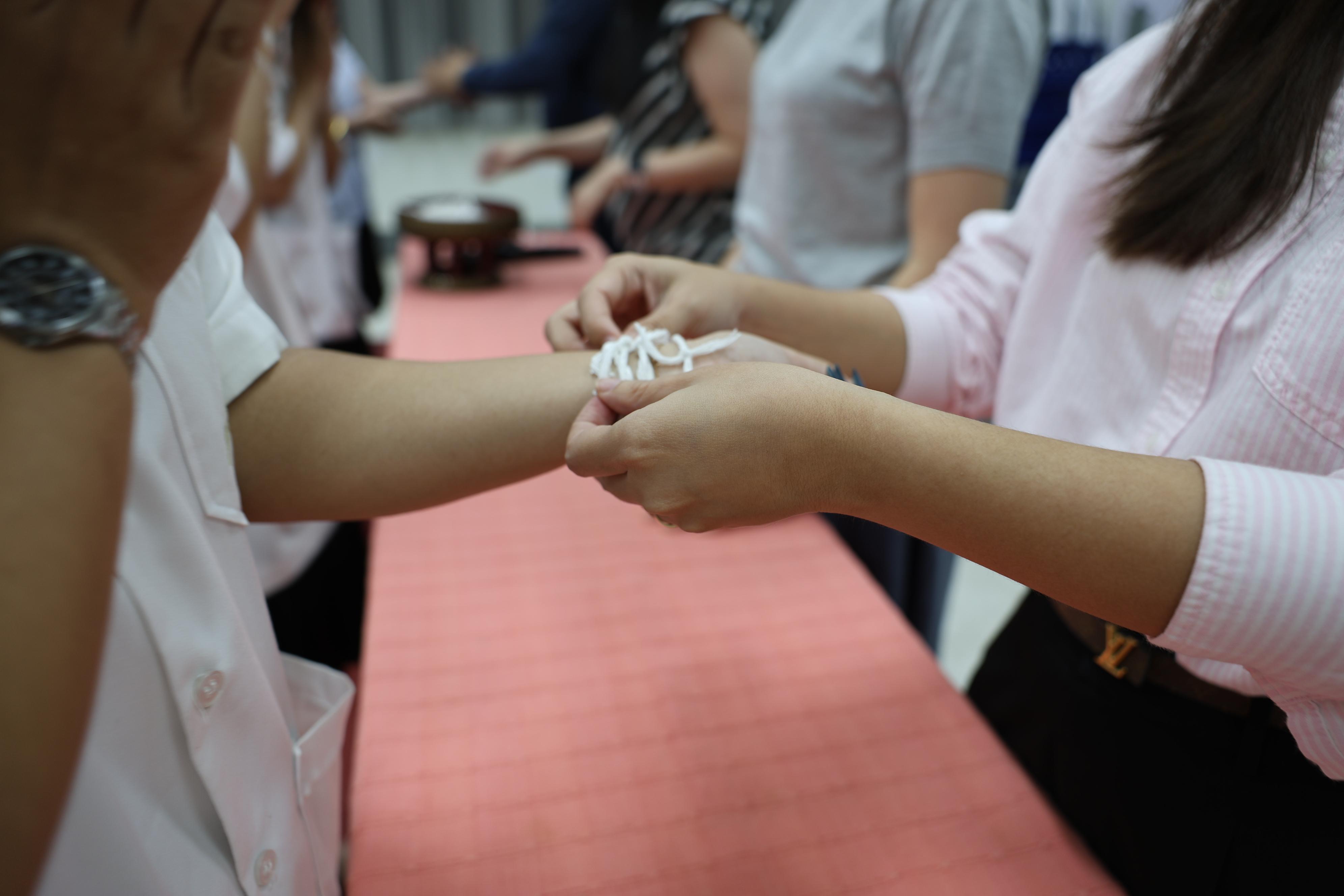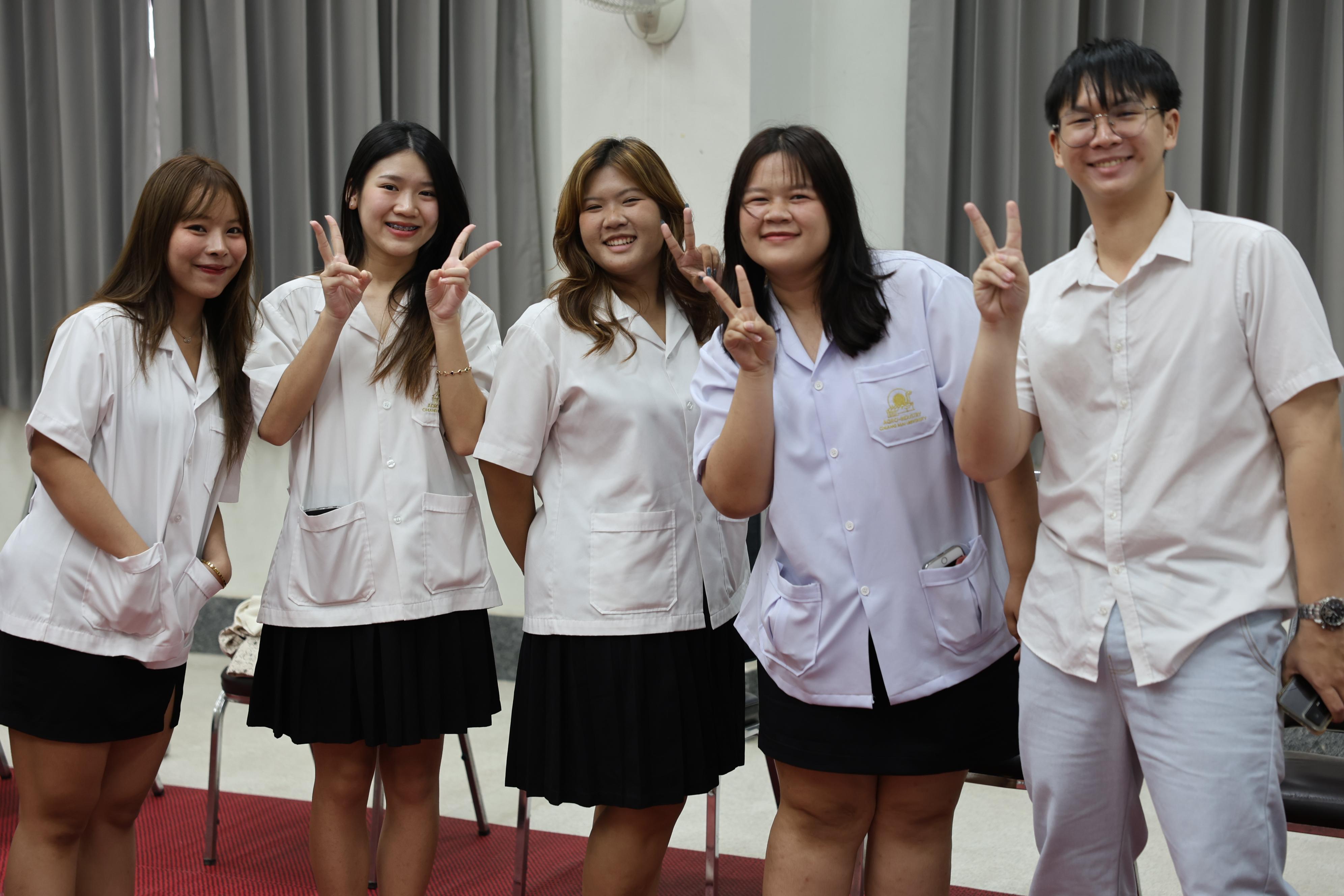 On March 24, 2025, the Division of Packaging Technology, Faculty of Agro-Industry, organized a farewell ceremony to congratulate fourth-year students on their graduation for the academic year 2024. Faculty members delivered farewell speeches, offering guidance and encouragement to the graduating students. The students also received blessings and had their wrists tied with sacred threads by their professors as a symbolic gesture of well-wishing. This event aimed to impart valuable lessons, perspectives, and life advice while boosting the students' morale, instilling pride in their achievements, and strengthening the bond between faculty and students.