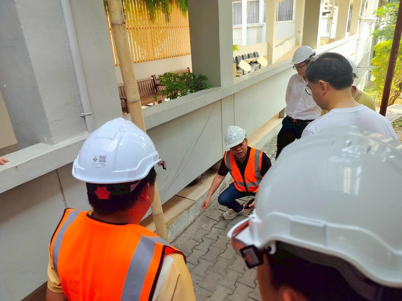 On March 31, 2025, from 9:00 to 11:00 AM, the Engineering Institute of Thailand under H.M. The King's Patronage (Northern Region 1), in collaboration with the Faculty of Engineering, Chiang Mai University, and the Northern Alumni Association of the Faculty of Engineering, Chiang Mai University, conducted an inspection of the Faculty of Agro-Industry building at Chiang Mai University, which may have been affected by an earthquake. The inspection results are as follows: