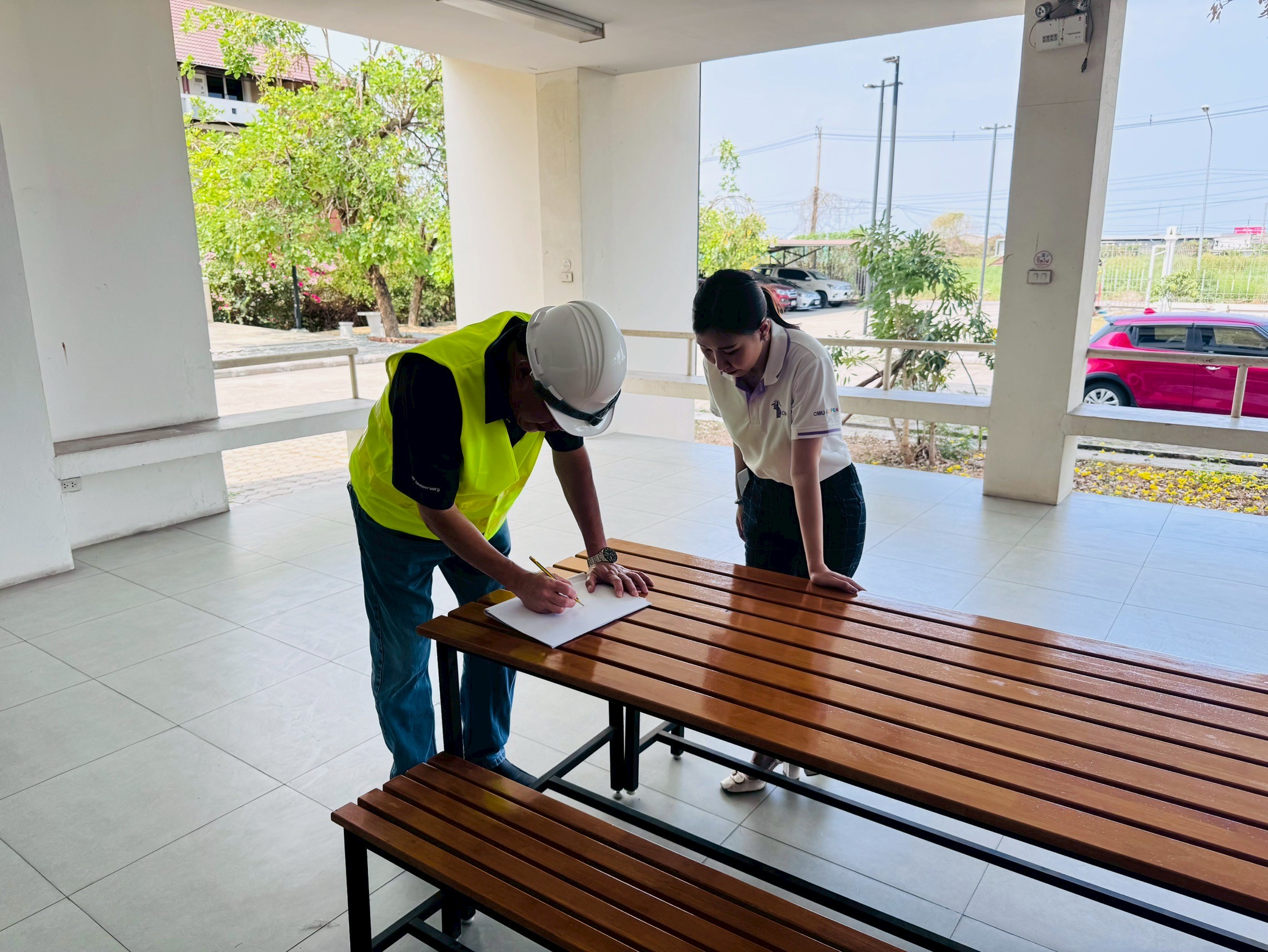On Friday, April 4, 2025, from 10:00 AM to 12:00 PM, the Engineering Institute of Thailand under the Royal Patronage (Northern Region 1) in collaboration with the Faculty of Engineering at Chiang Mai University and the Chiang Mai University Engineering Alumni Association (Northern Branch) provided assistance in inspecting the Faculty of Agro-Industry building (Samut Sakhon), which may have been affected by the 8.2 magnitude earthquake on land, with the epicenter located in Mandalay, Myanmar, on Friday, March 28, 2025. The results from the inspection showed that the Faculty of Agro-Industry building (Samut Sakhon) is safe and can be used as normal.