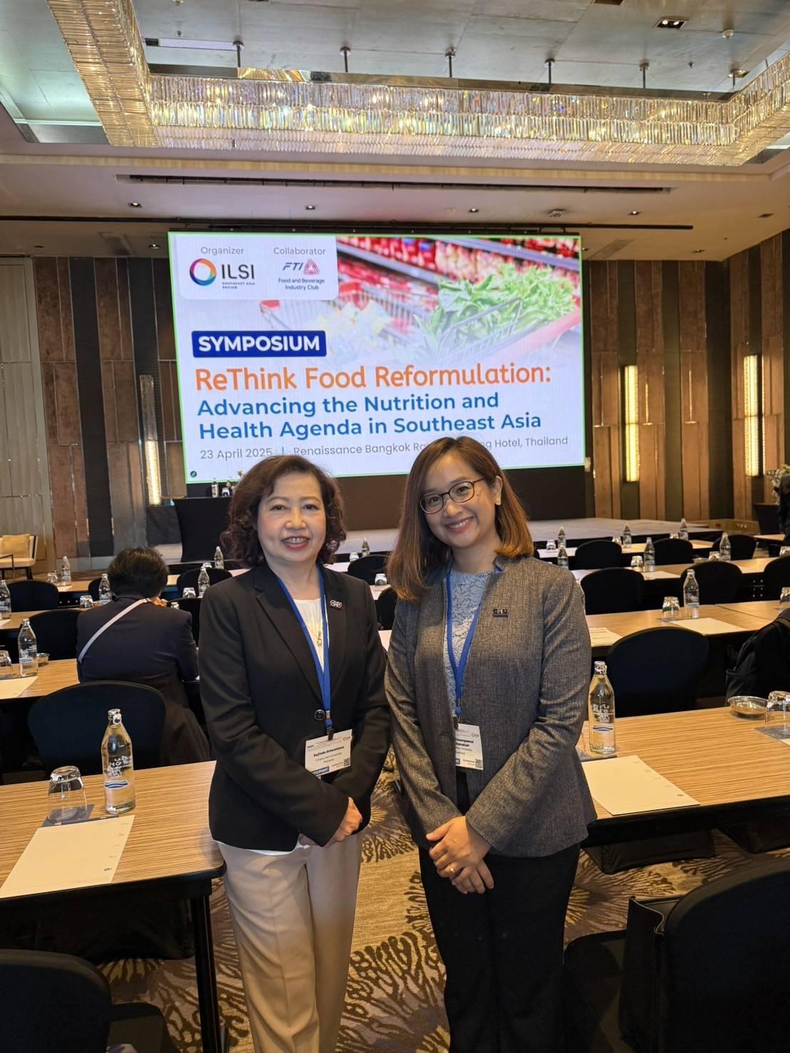 On April 23, 2025, Assistant Professor Dr.Pavalee Chompoorat Tridtitanakiat, Assistant Dean of the Faculty of Agro-Industry, together with Associate Professor Dr.Sujinda Sriwattana, attended the Symposium under the topic of ReThink Food Reformulation : Advancing the Nutrition and Health Agenda in Southeast Asia, organized by ILSI Southeast Asia Region which was held at Renaissance Bangkok Ratchaprasong Hotel, Bangkok