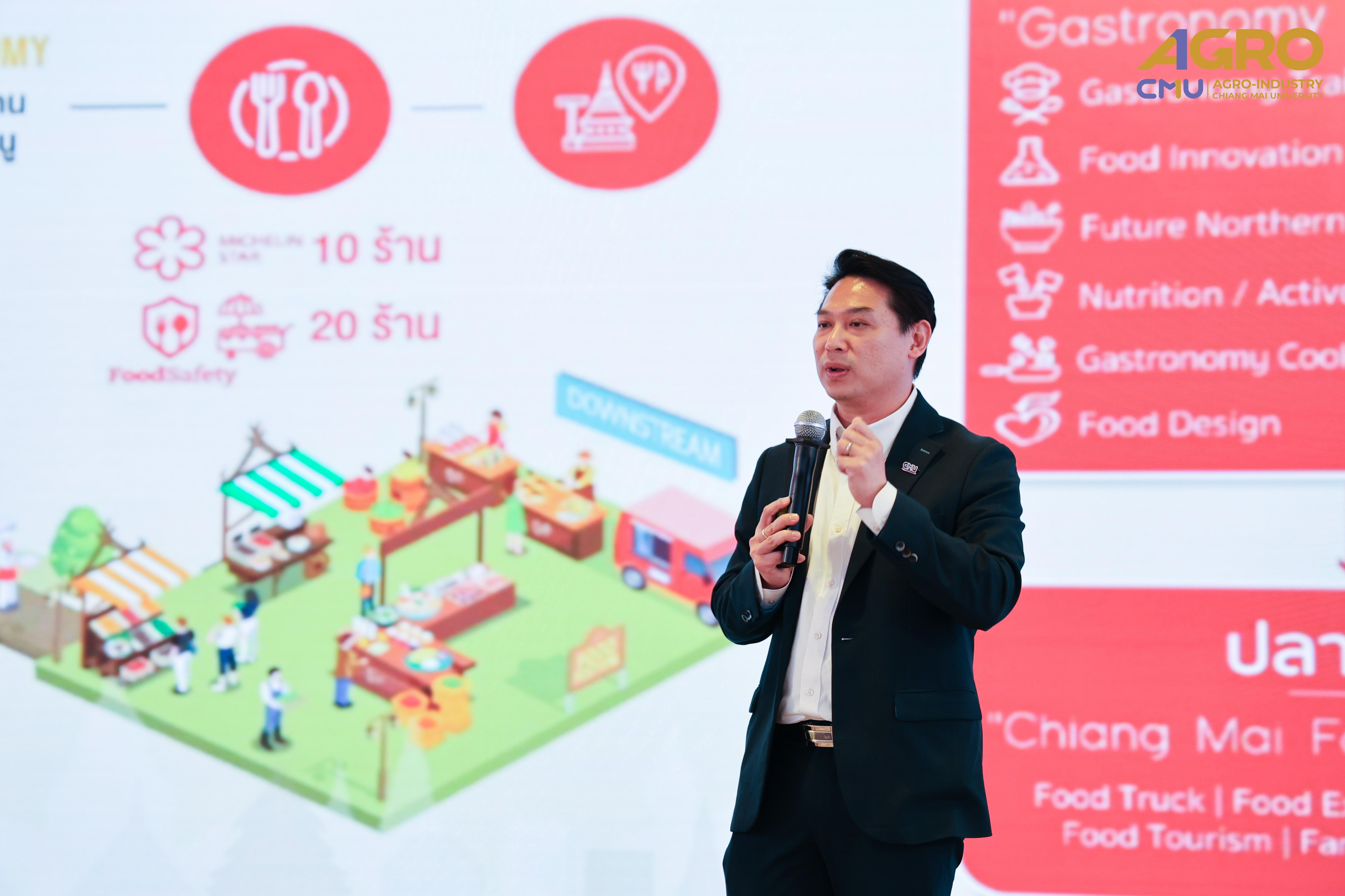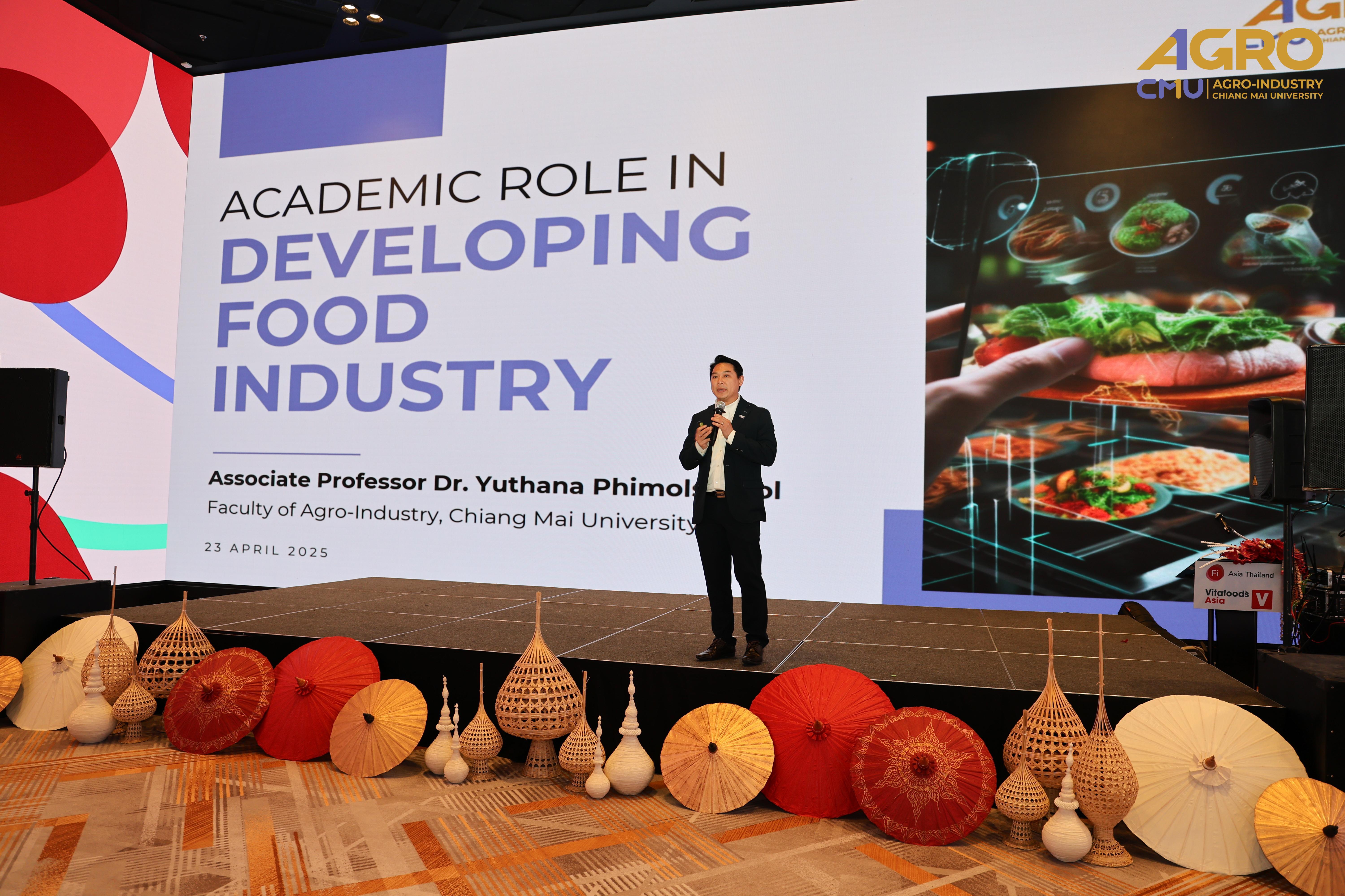 On April 23, 2025, Associate Professor Dr. Yuthana Phimolsiripol, Dean of the Faculty of Agro-Industry, Chiang Mai University, participated in an exchange of ideas and information with the media, leading entrepreneurs, and experts in the food, beverage, and dietary supplement industries. This event provided an excellent opportunity to understand market directions and trends, which will help drive businesses and organizations towards a sustainable future. It also facilitated the creation of new partnerships and the expansion of networks both nationally and regionally. The event was held at the Marriott Hotel in Chiang Mai.