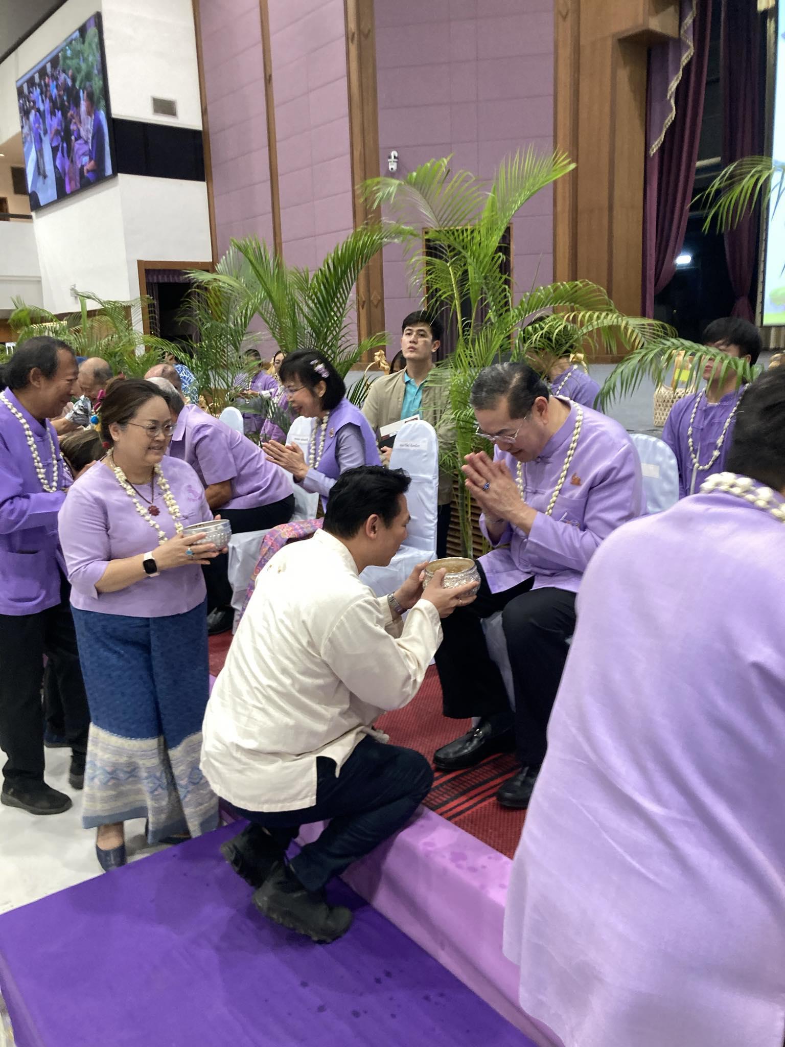 On April 25, 2025, Associate Professor Dr.Yuthana Phimolsiripol, Dean of the Faculty of Agro-Industry, along with the executives, faculty members, participated in “Rod Nam Dum Hua : the Water Pouring Ceremony of the University's President and Elders for the year 2025” , to pay respects to the senior members of the university and ask for blessings from the University's President and Elders for good fortune on the occasion of Songkran Festival which was held at CMU Convention Center, Chiang Mai University. The water blessing ceremony is a significant event in the university's continuous efforts to uphold and preserve Thai traditions, showing respect to elders, and fostering a sense of unity and gratitude within the community.