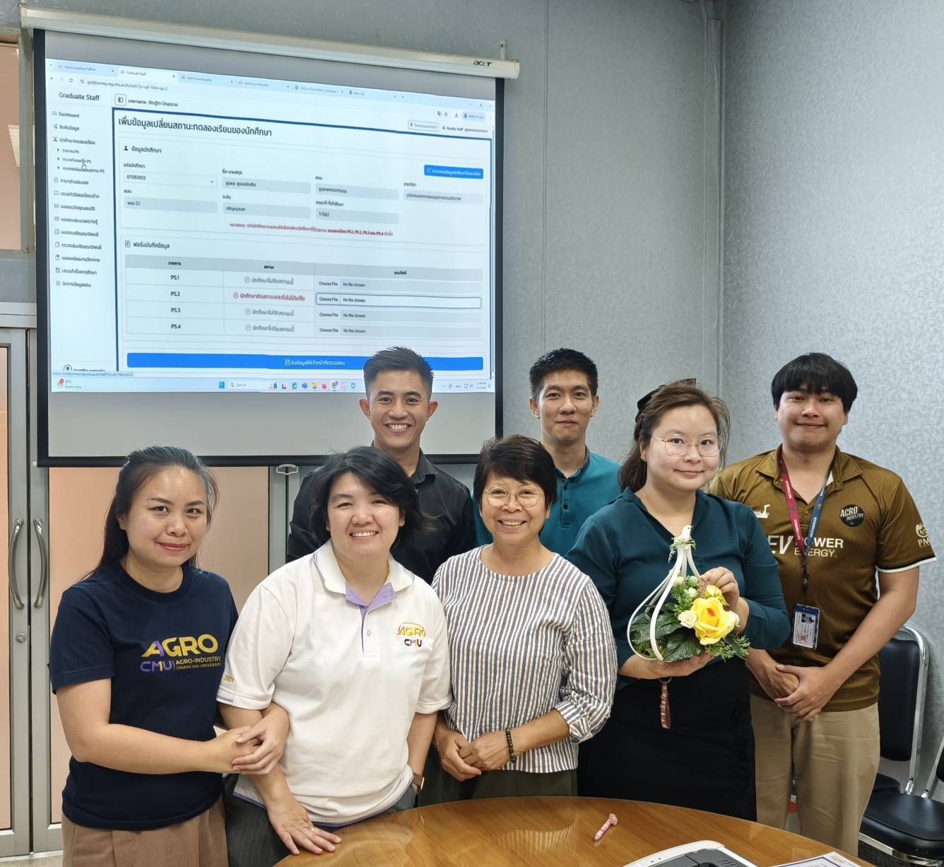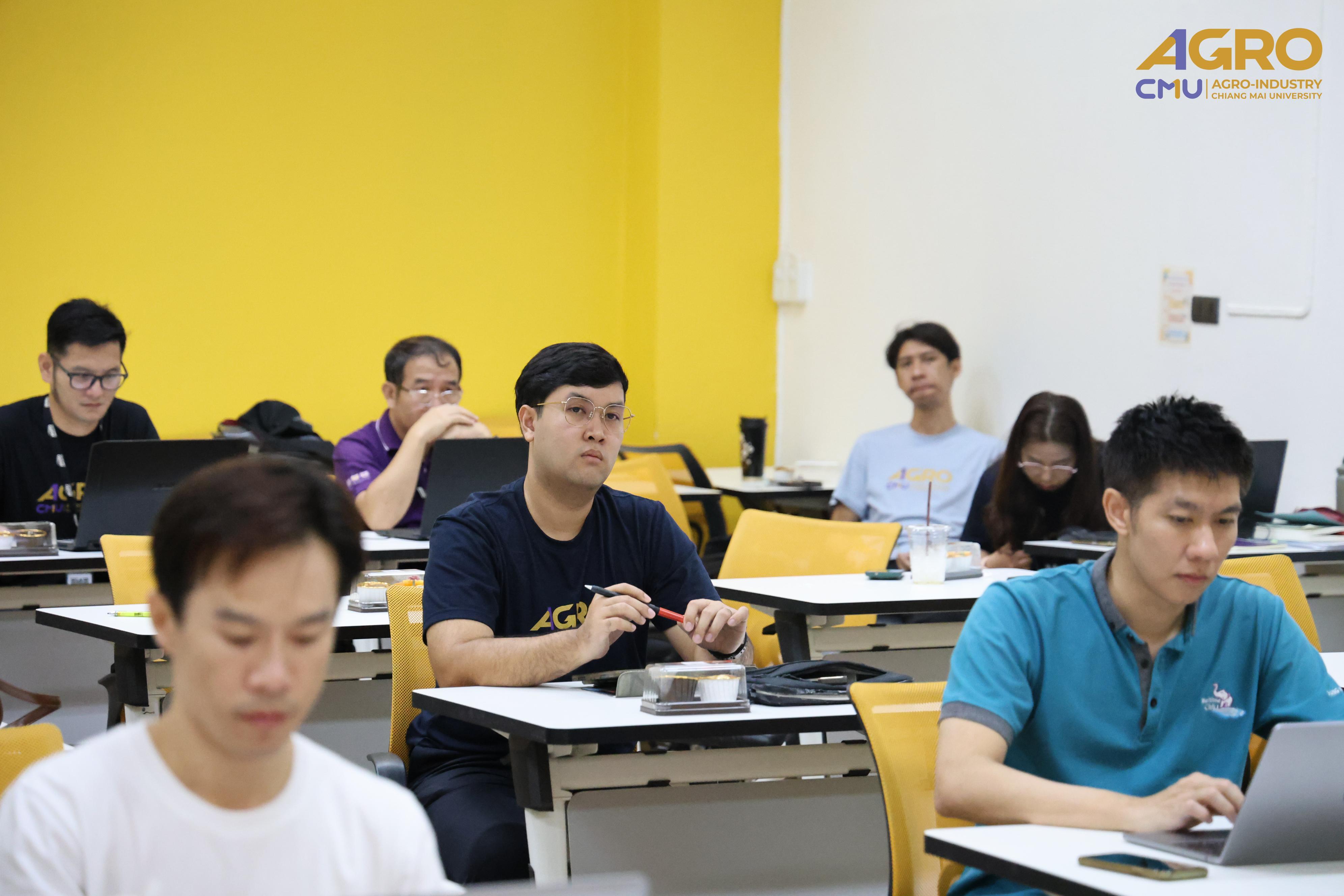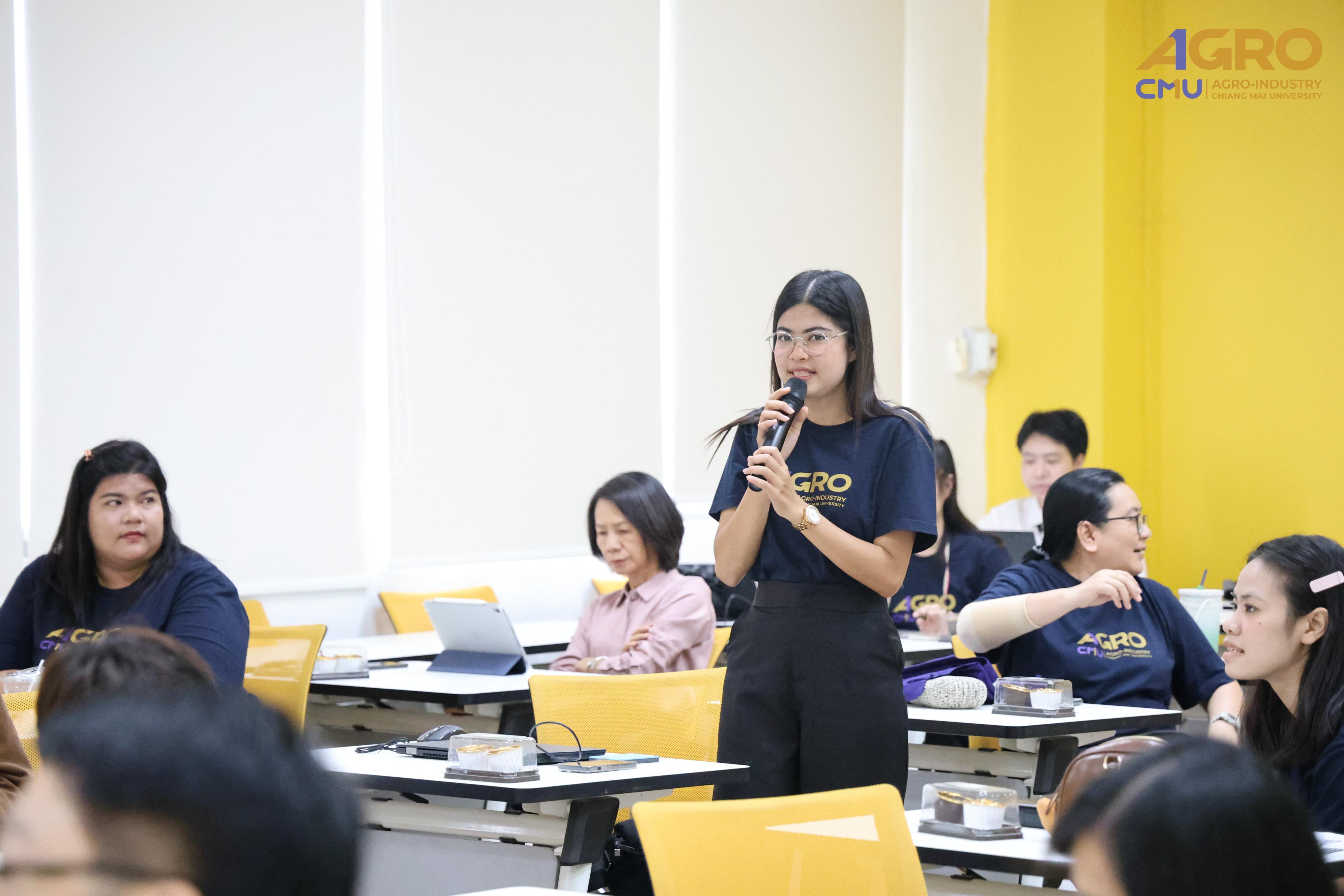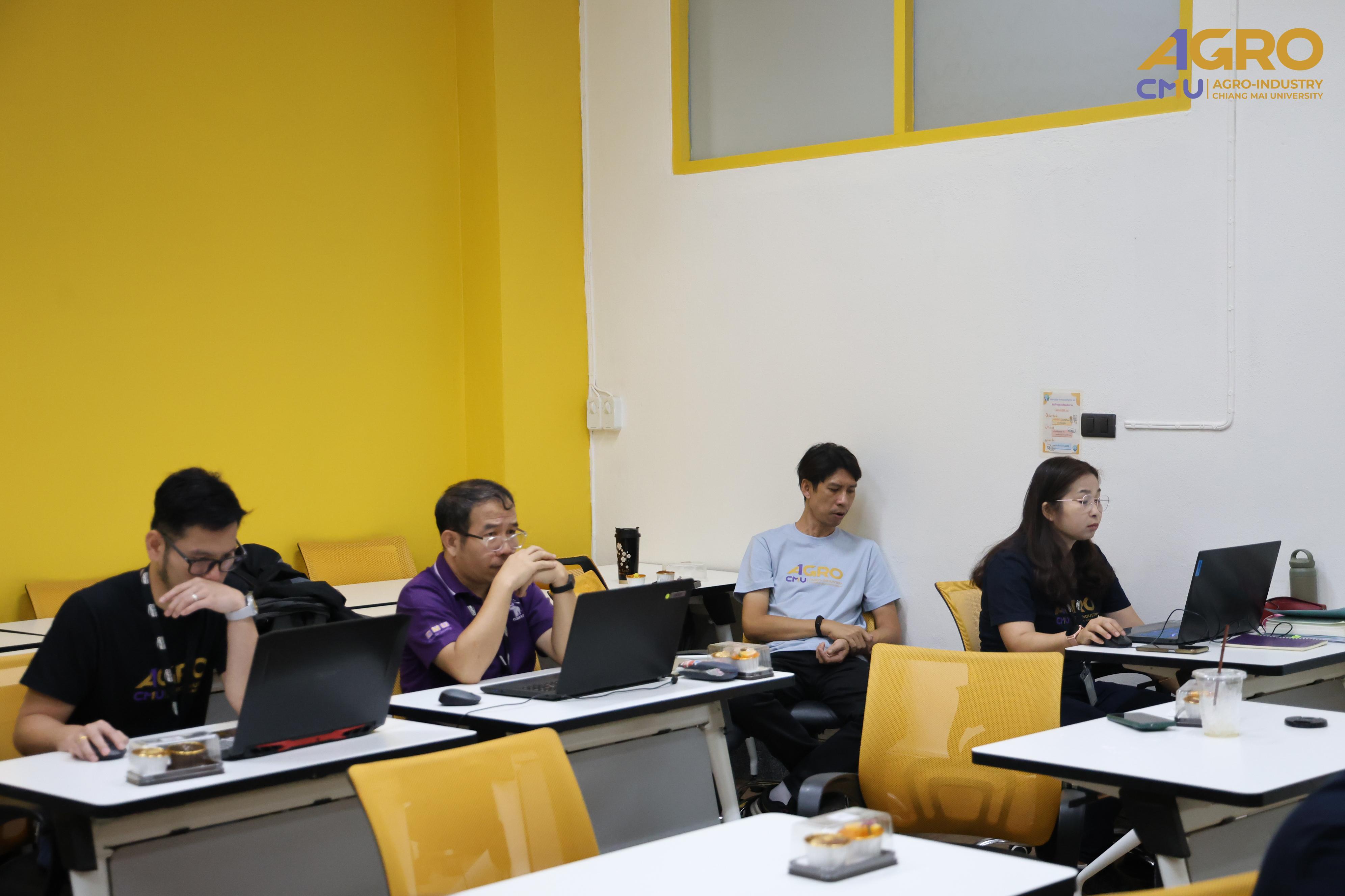 From May 1-2, 2025, the Faculty of Agro-Industry, Chiang Mai University, organized an activity for exchanging work methods among personnel from Chiang Mai and Samut Sakhon. This event involved staff from five departments under the faculty office. Assistant Professor Dr. Srisuwan Naruenartwongsakul, Deputy Dean, presided over the opening ceremony along with Assistant Professor Dr. Suphat Phongthai, Assistant Dean. Additionally, Ms. Piyanuch Sawasdee, Secretary of the Faculty of Agro-Industry, delivered a lecture on filling out General Functional workload forms, performance results according to the faculty office's indicators, and reviewing relevant rules, regulations, announcements, and practices. The event took place in Classroom 1-219, Building 1, 2nd Floor, Faculty of Agro-Industry, Chiang Mai University.
