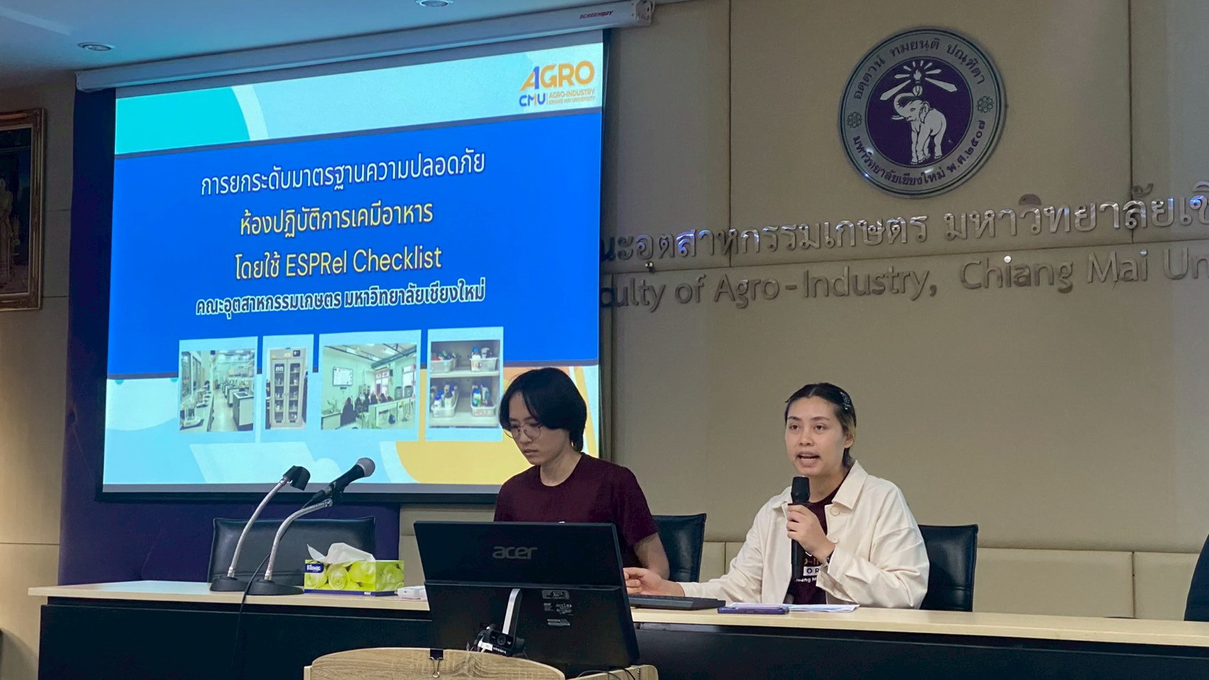 On Thursday, May 1, 2025, from 08:30 to 16:30, the Scientific Laboratory Division organized a knowledge exchange activity between the Scientific Operations Divisions of the Faculty of Agro-Industry, Chiang Mai University (CMU) and Samut Sakhon. The objective was to share experiences and best practices in laboratory management and scientific instrumentation, enhance laboratory safety standards related to chemical substances using the ESPReL Checklist, and promote the implementation of safety protocols for laboratories dealing with pathogens and animal toxins under the Pathogens and Animal Toxins Act, as well as Biosafety Level 2 laboratories.