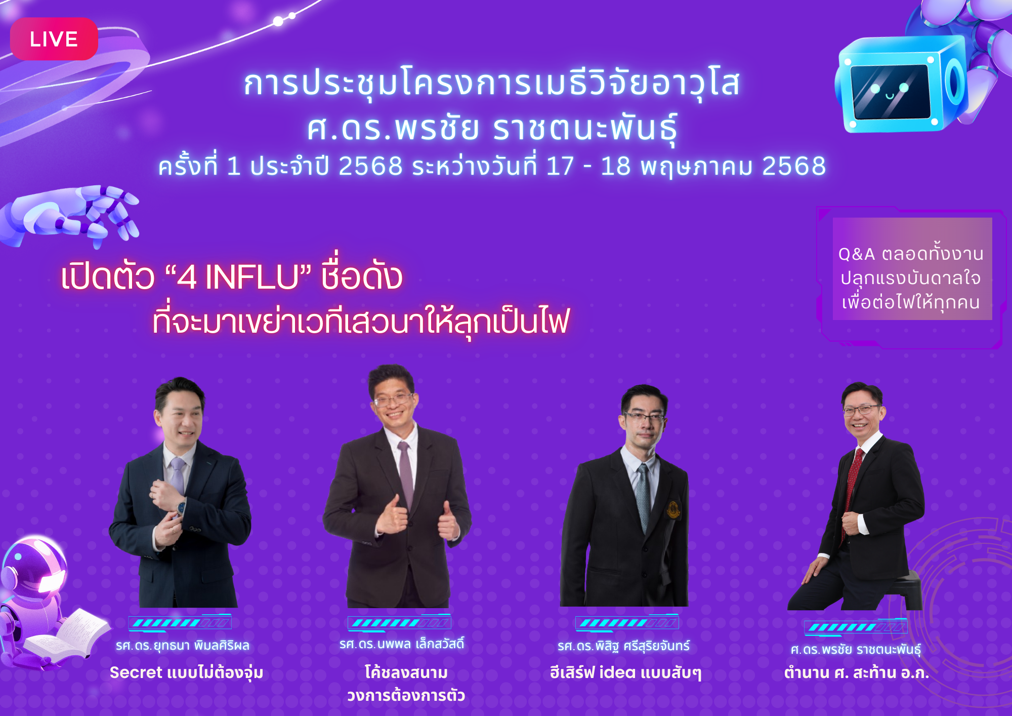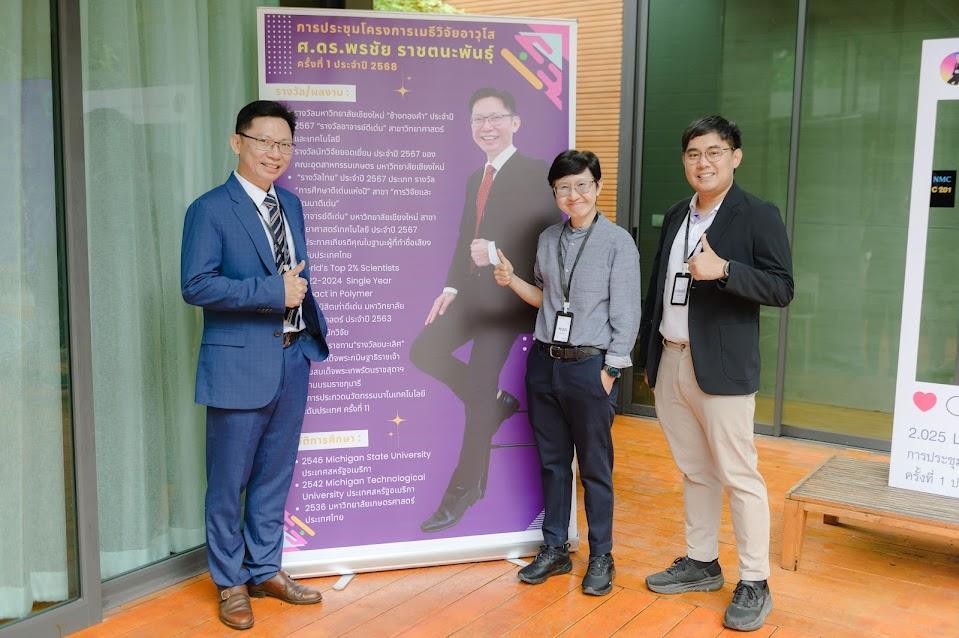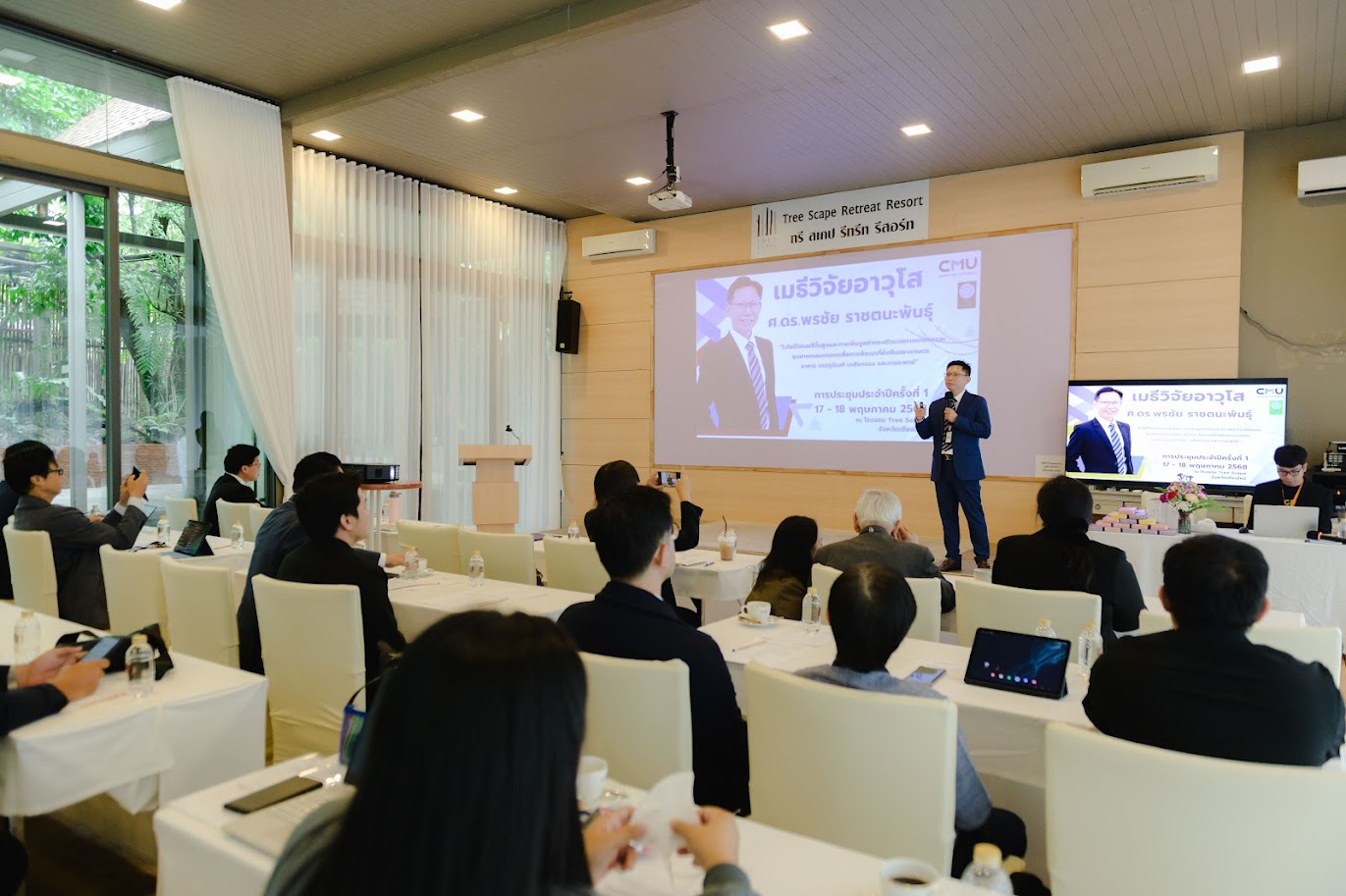 การจัดกิจกรรมการประชุมโครงการทุนเมธีวิจัยอาวุโส ศ.ดร.พรชัย ราชตนะพันธุ์ ของสำนักงานการวิจัยแห่งชาติ (วช.) ครั้งที่ 1 ประจำปี 2568 ระหว่างวันที่ 17-18 พฤษภาคม 2568 โดยมี ศาสตราจารย์ ดร.พรชัย ราชตนะพันธุ์ หัวหน้าโครงการฯ กล่าวรายงานวัตถุประสงค์ และ รองศาสตราจารย์ ดร.วินิตา บุณโยดม รองอธิการบดีมหาวิทยาลัยเชียงใหม่ ให้เกียรติกล่าวต้อนรับอย่างอบอุ่น พร้อมกล่าวเปิดการประชุมดังกล่าว ณ โรงแรม ทรีสเคป รีทรีท รีสอร์ท เชียงใหม่
