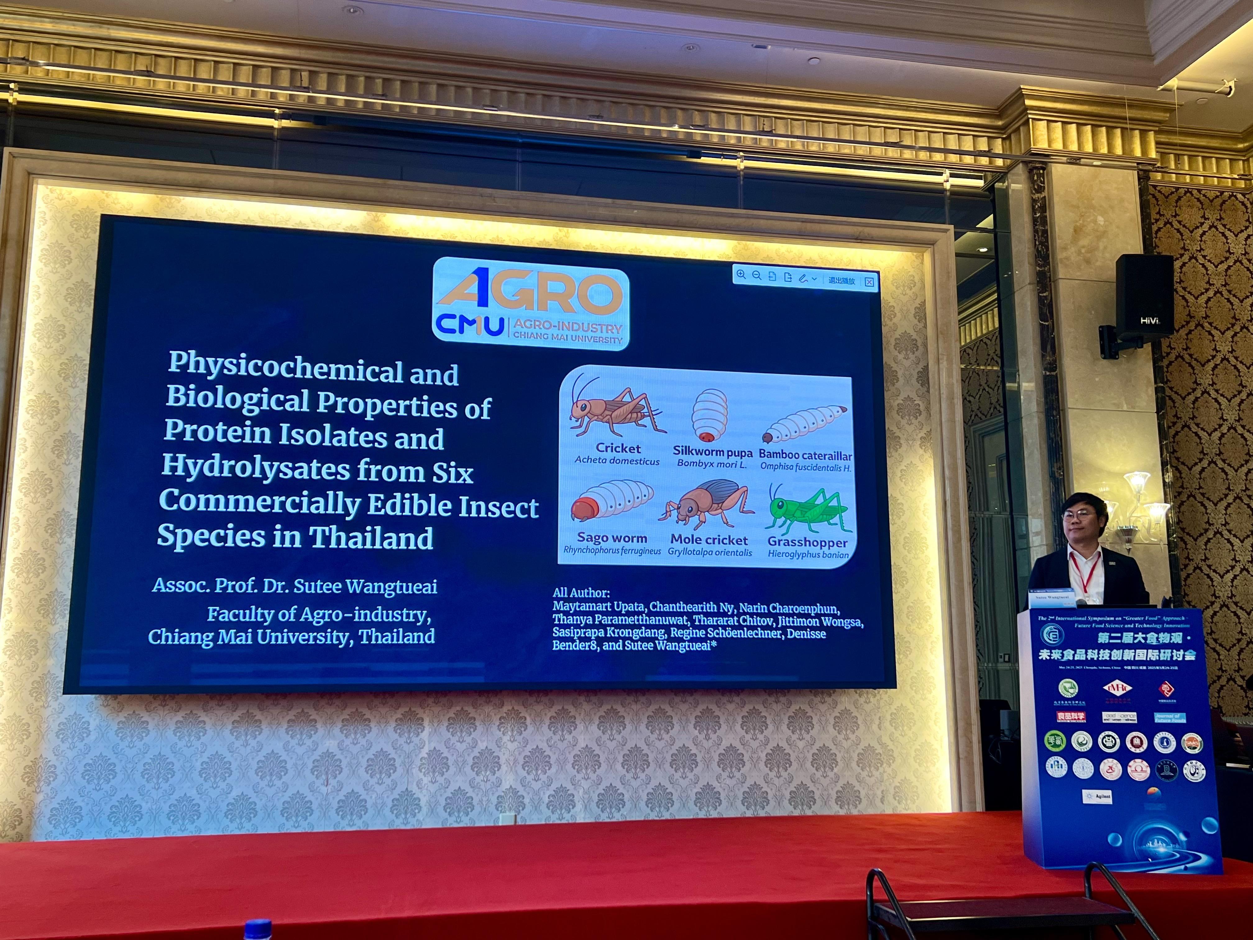 At the symposium, Assoc. Prof. Dr. Sutee Wangtueai delivered a well-received guest lecture on “Physicochemical and Biological Properties of Protein Isolates and Hydrolysates from Six Edible Insect Species in Thailand,” attracting strong interest from both local and international participants.