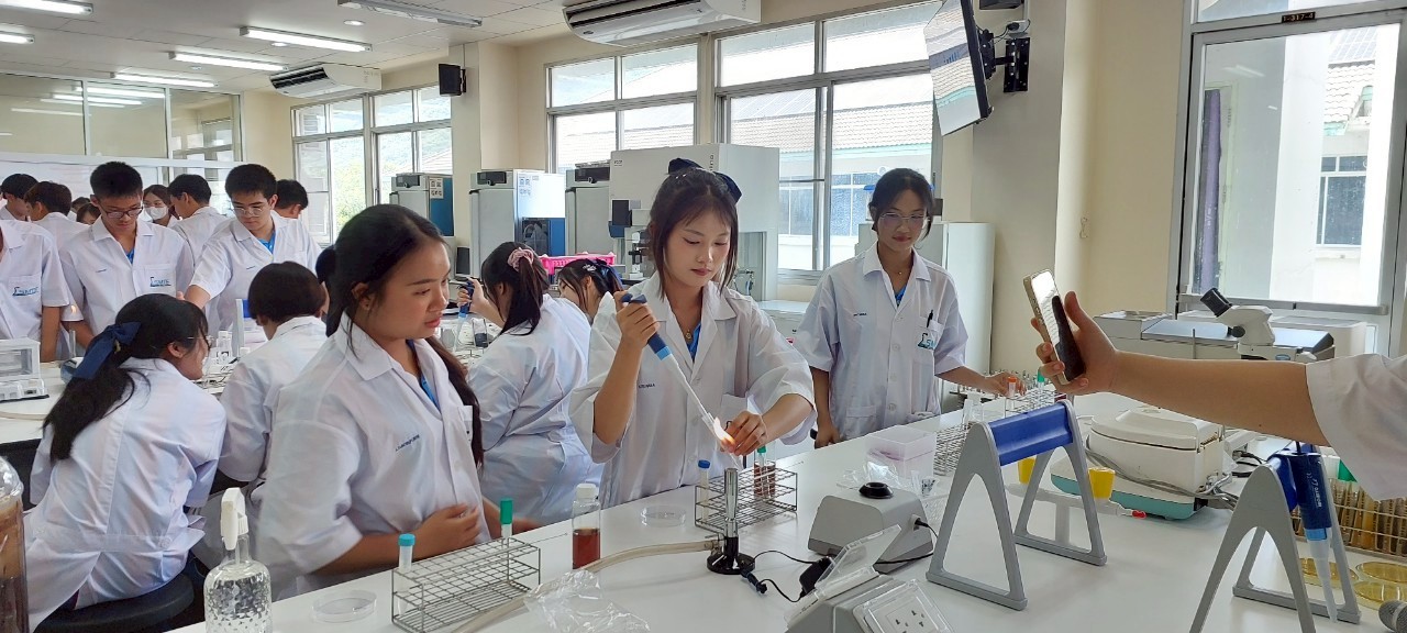 The training was led by experts from the Department of Industrial Biotechnology, including Dr. Niphawan Panti, Dr. Kamon Yakul, Mr. Sathian Boonkum and Mrs. Nunnapat Nguenkhamkhong. During the workshop, students gained both theoretical knowledge and hands-on experience in the lab. They also explored advanced scientific equipment and received valuable insights from our faculty members. This activity was designed to spark students’ interest in food technology and provide them with real-world learning experiences as they prepare for university life.