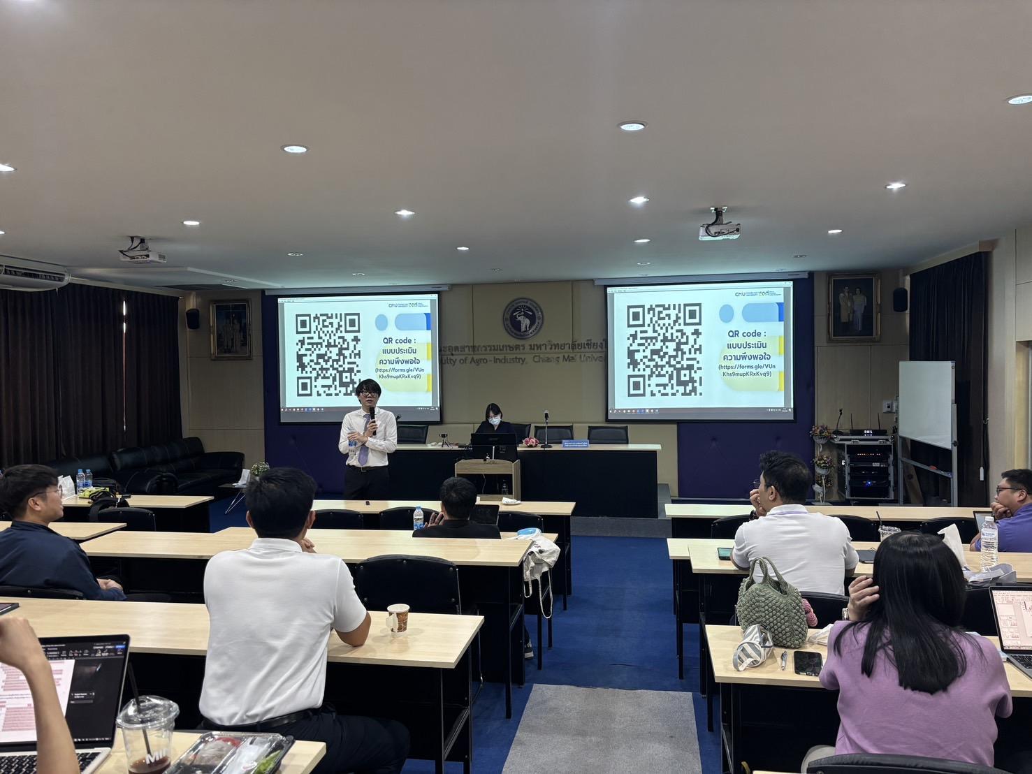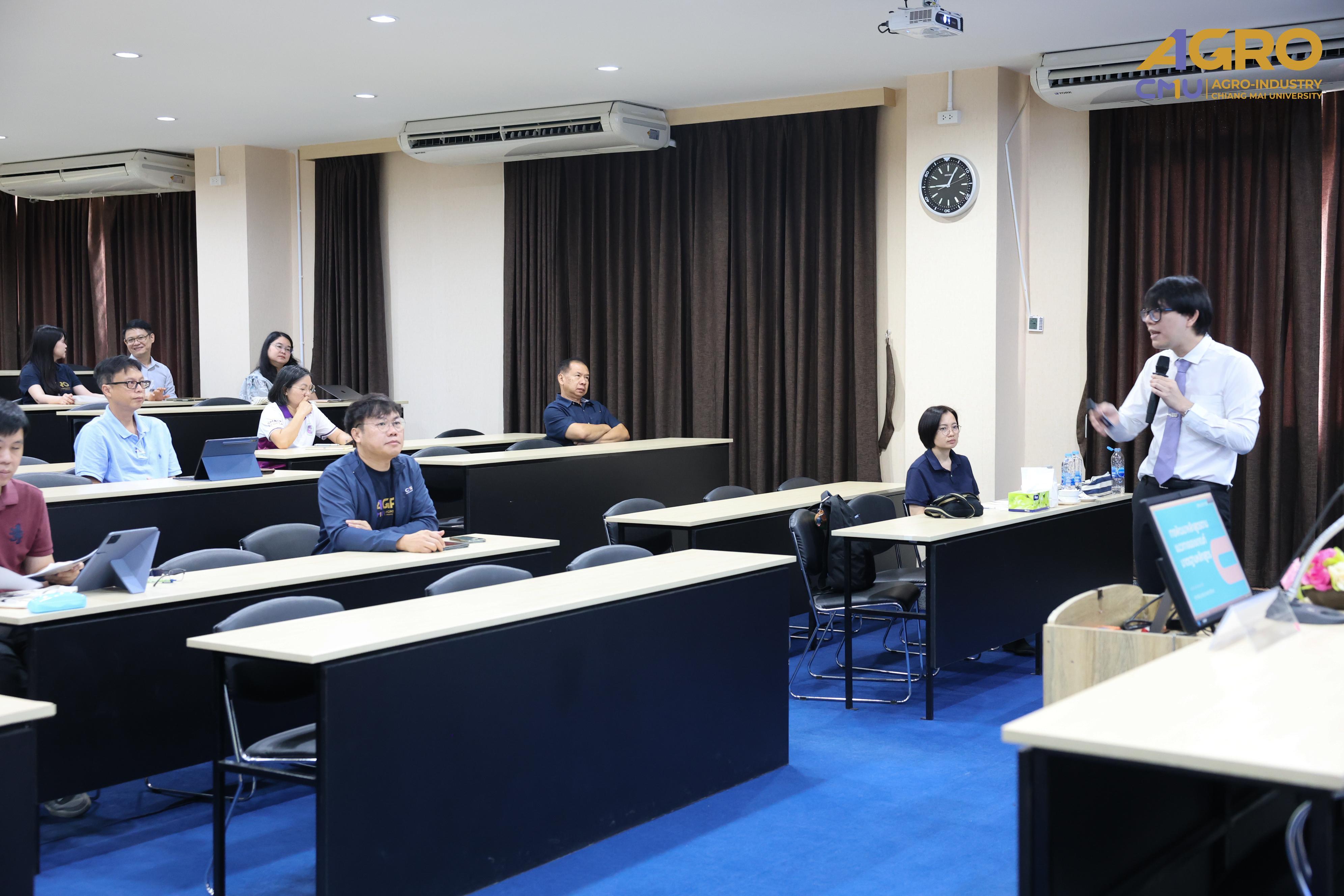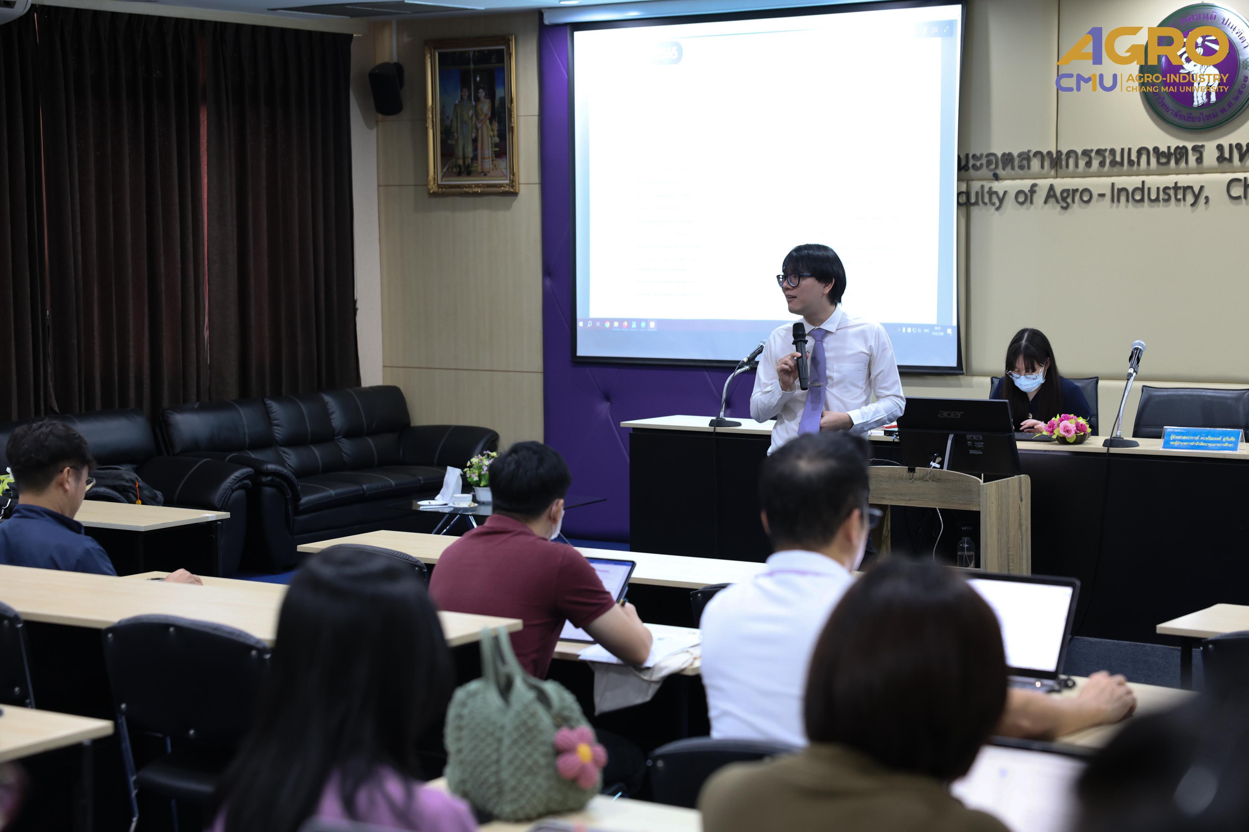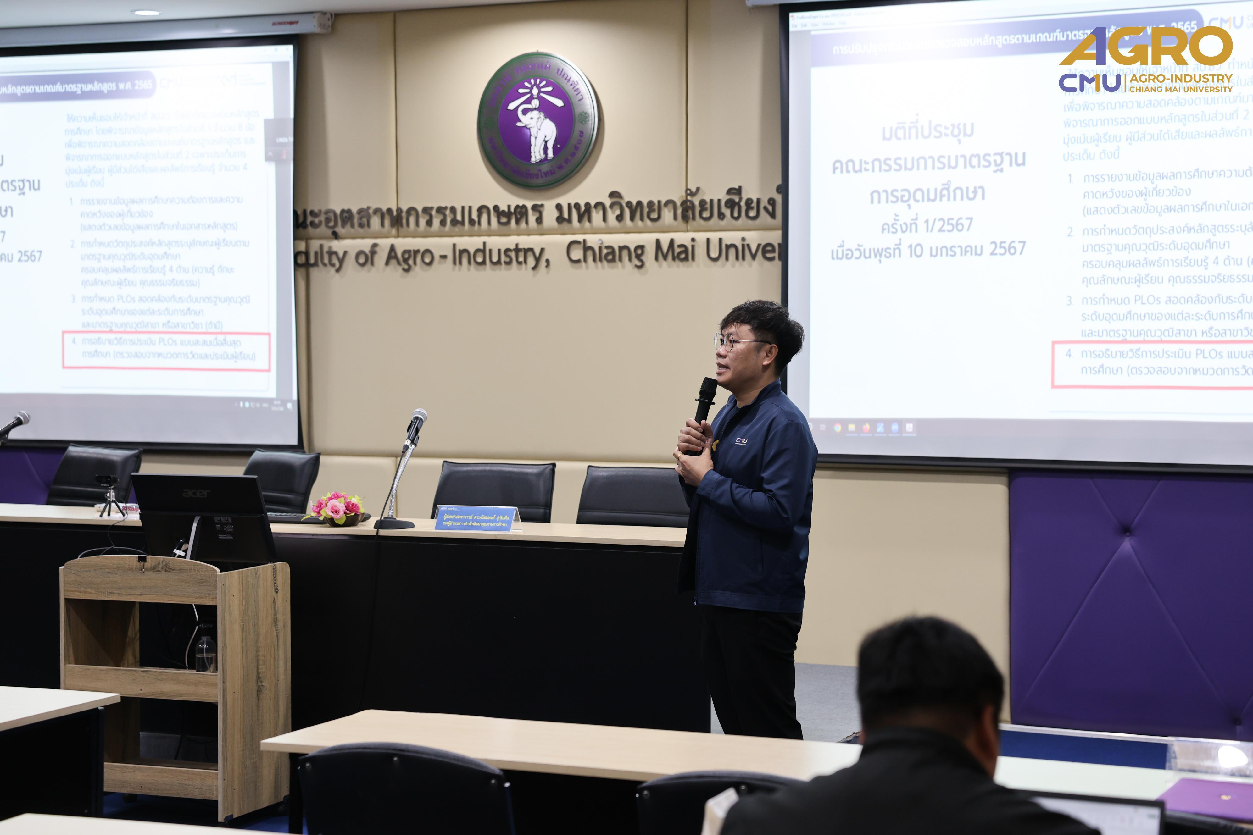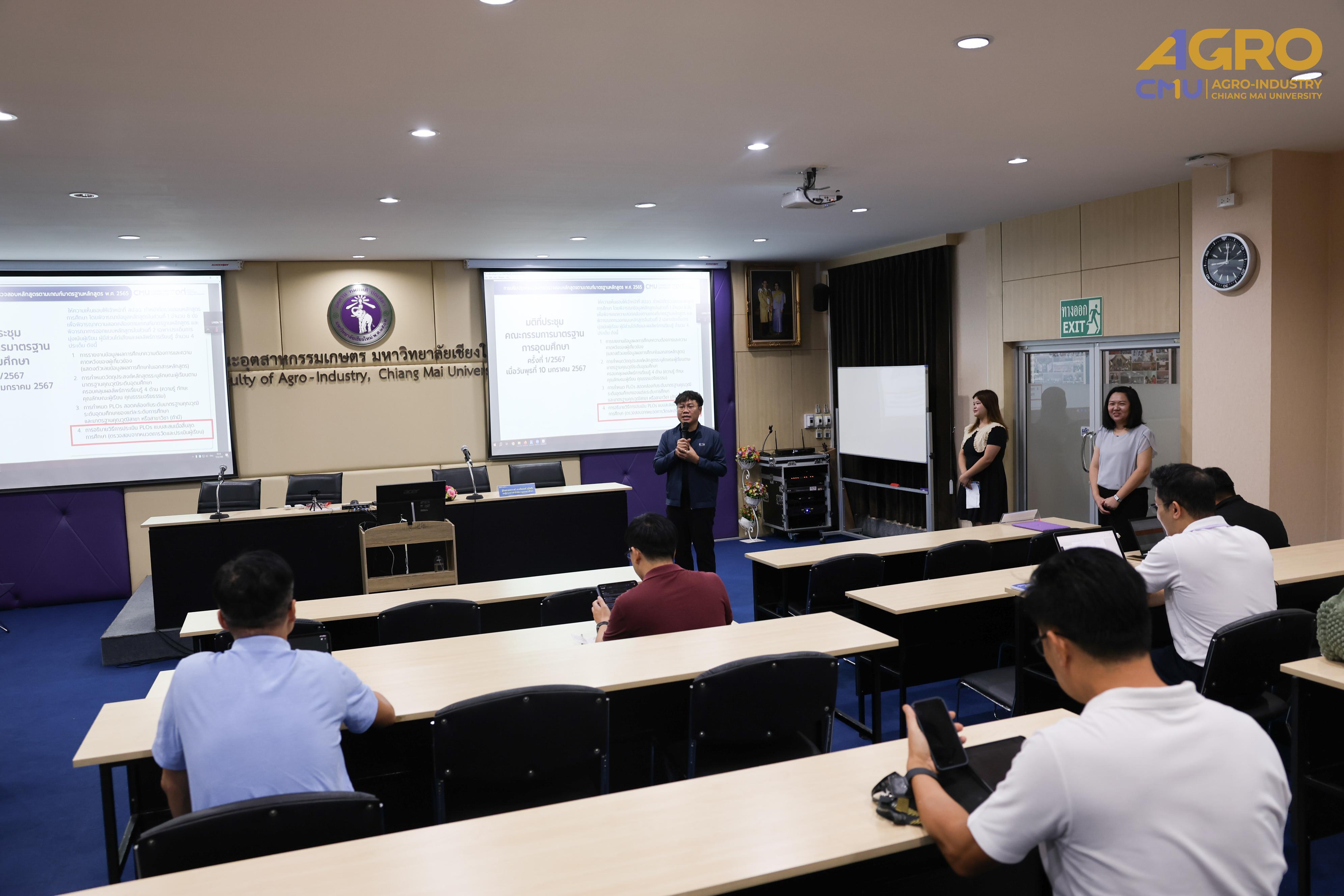 Associate Professor Dr. Suthee Wangtuay, Vice Dean of the Faculty of Agro-Industry, delivered the opening remarks for the event. The training featured Assistant Professor Dr. Prompong Sukansil, Deputy Director of the Office of Educational Quality Development, as the key speaker who provided comprehensive knowledge on curriculum improvement guidelines, processes, and procedures, including higher education curriculum standards and criteria.