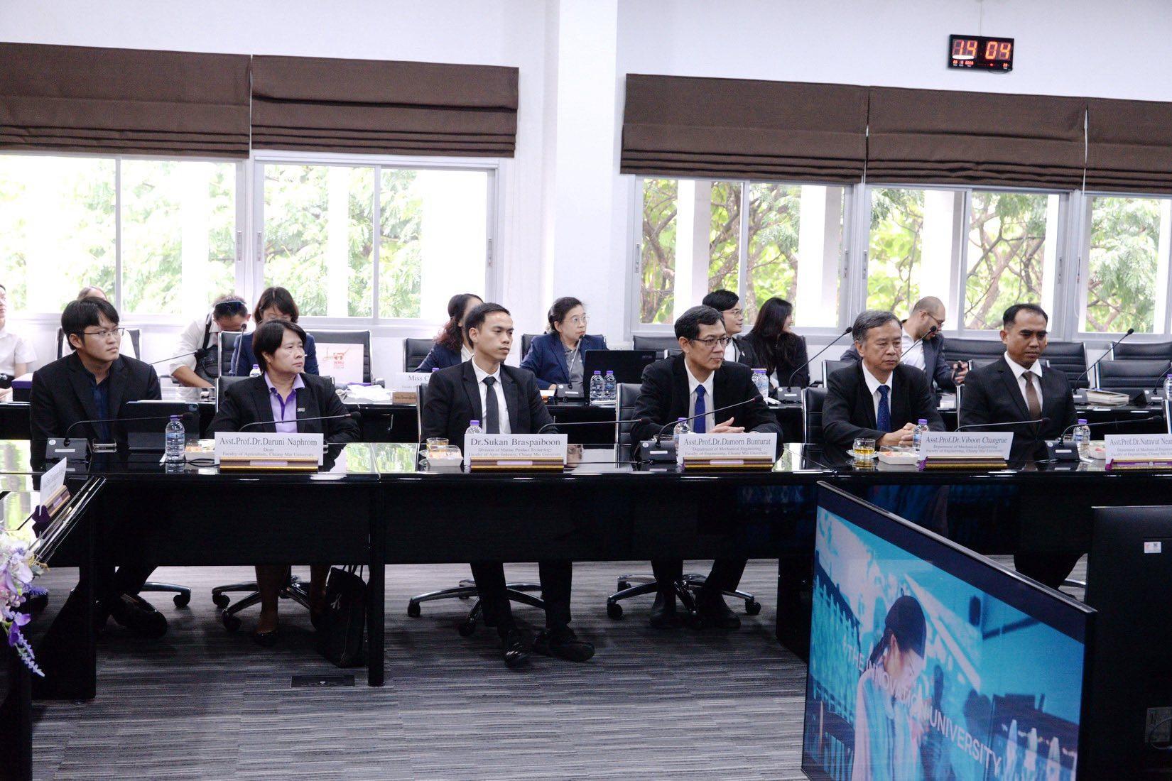 ในการนี้ ผู้ช่วยศาสตราจารย์ทศพร พิชัยยา รองอธิการบดีมหาวิทยาลัยเชียงใหม่ ได้กล่าวต้อนรับและนำเสนอแนวทางความร่วมมือระหว่างมหาวิทยาลัยเชียงใหม่กับฝ่ายจีนในด้านการเกษตร โดยเน้นประเด็นที่เกี่ยวข้องกับเครื่องจักรกลการเกษตร ระบบชลประทาน ความมั่นคงทางอาหาร การฝึกอบรมบุคลากร และโครงการแลกเปลี่ยนนักศึกษา