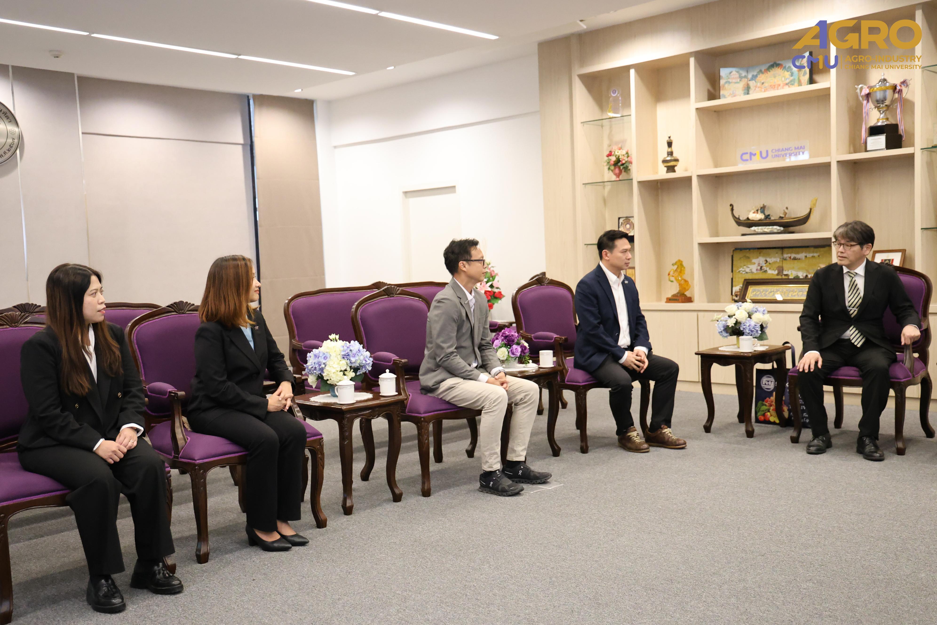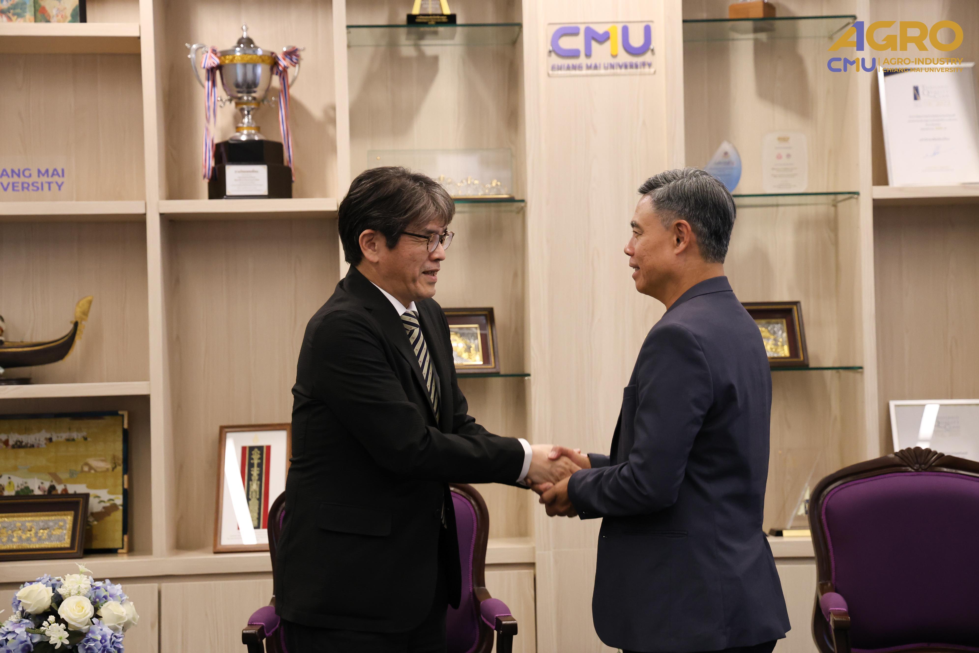 On July 7, 2025, the Faculty of Agro-Industry, Chiang Mai University, led by its executive team—Assoc. Prof. Dr. Yuthana Phimolsiripol, Assoc. Prof. Dr. Kittisak Jantanasakulwong, and Asst. Prof. Dr. Pavalee Chompoorat Tridtitanakiat—warmly welcomed Professor Kenji Wada, Vice President of Kagawa University, Japan, during his visit to Chiang Mai University.