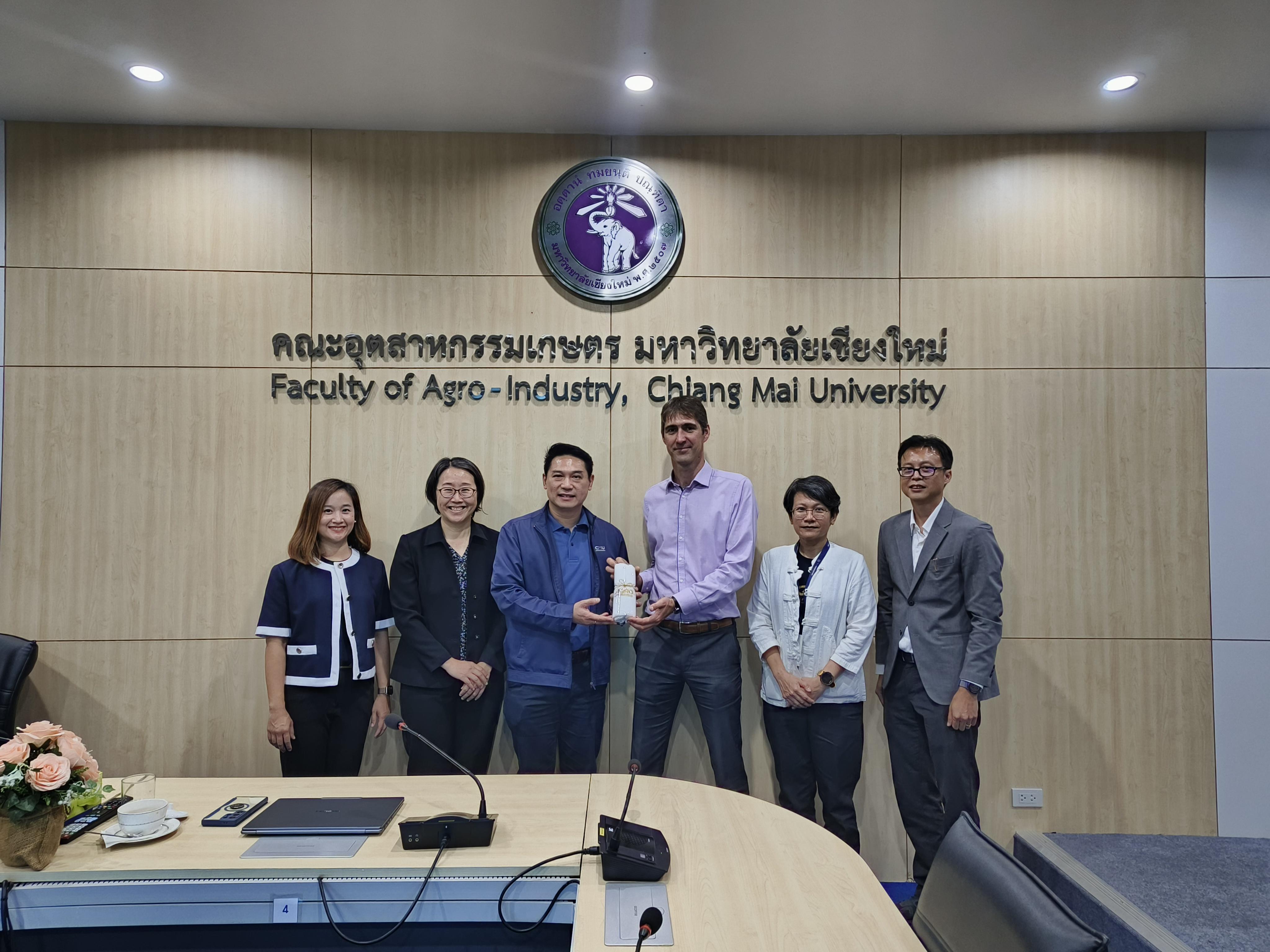 The executive team of the Faculty of Agro-Industry—Assoc. Prof. Dr. Yuthana Phimolsiripol, Assoc. Prof. Dr. Kittisak Jantanasakulwong, and Asst. Prof. Dr. Pavalee Chompoorat Tridtitanakiat—also welcomed Professor Saeys and held discussions on expanding academic partnerships and strengthening global collaboration networks.