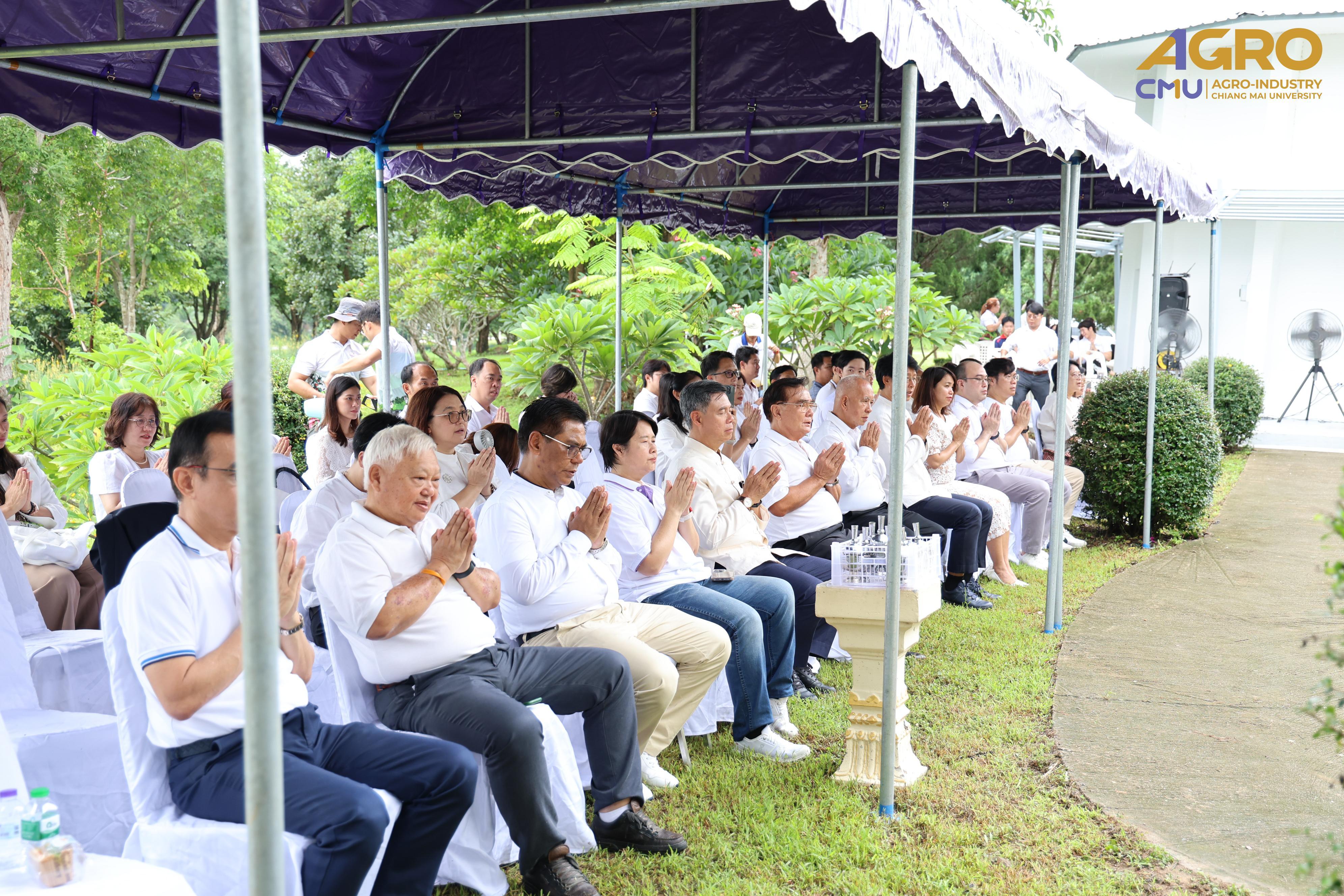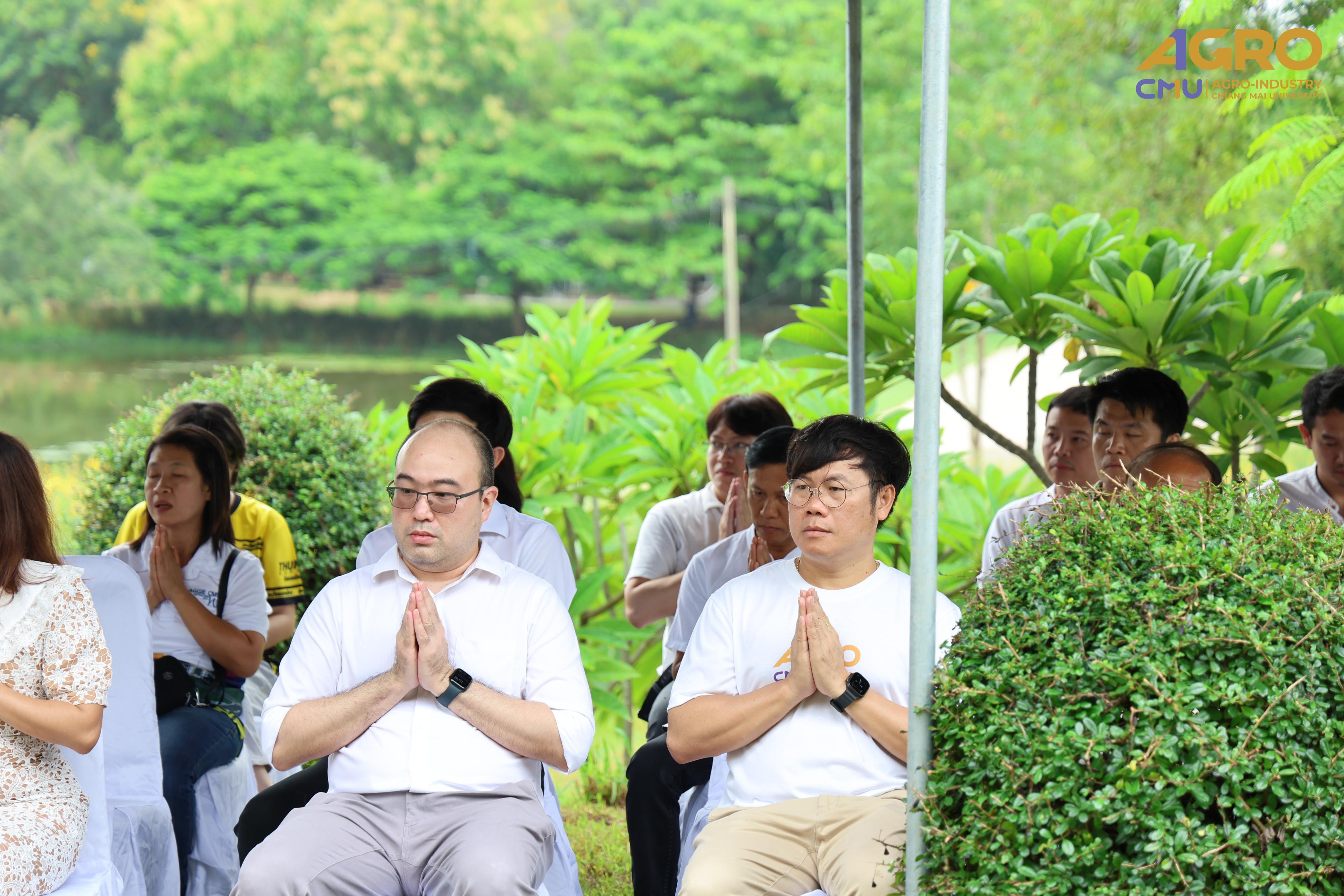On July 17, 2025, Associate Professor Dr. Sutee Wangtueai, Vice Dean of the Faculty of Agro-Industry, Chiang Mai University, participated in the Ceremonial Placement of the Chatra (Tiered Umbrella) atop the Phra Phuttha Saen Yat Buddha image. This sacred ritual was held as an act of reverence and spiritual offering to honor the Buddha and to bring auspicious blessings to faculty members, staff, and students from various departments of the university. The ceremony took place at the Phra Phuttha Saen Yat Hall, Mae Hia, Faculty of Agriculture, Chiang Mai University.