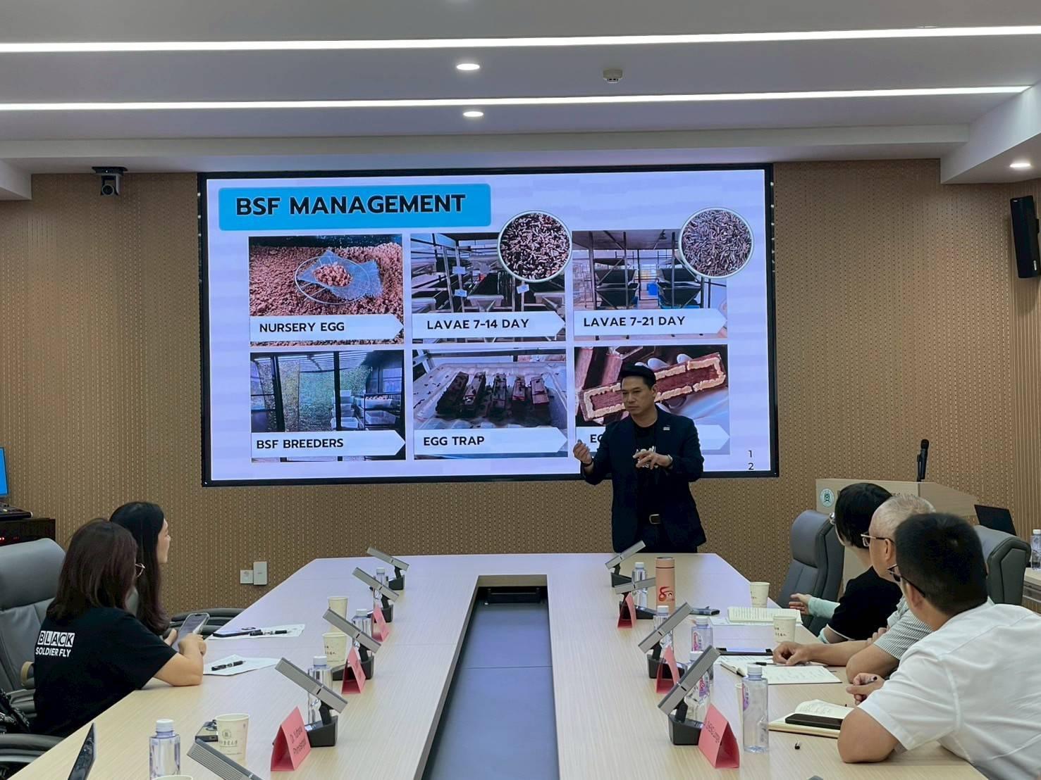 การเยือนในครั้งนี้ประกอบด้วยการประชุมหารือด้านความร่วมมือ การเยี่ยมชมสถานที่ปฏิบัติงาน และฟาร์มต้นแบบ BSF ณ ห้องปฏิบัติการหลักของมหาวิทยาลัยเกษตรหัวจง (Huazhong Agricultural University) และสถาบันการแปรรูปผลิตภัณฑ์เกษตรเจียงไห่ (Jianghuai Agricultural Product Fine Processing and Resource Utilization) แห่งมหาวิทยาลัยเกษตรอานฮุย (Anhui Agricultural University) พร้อมเยี่ยมชมโรงงานแปรรูปอาหาร Cha cha และ Wangrenhe
