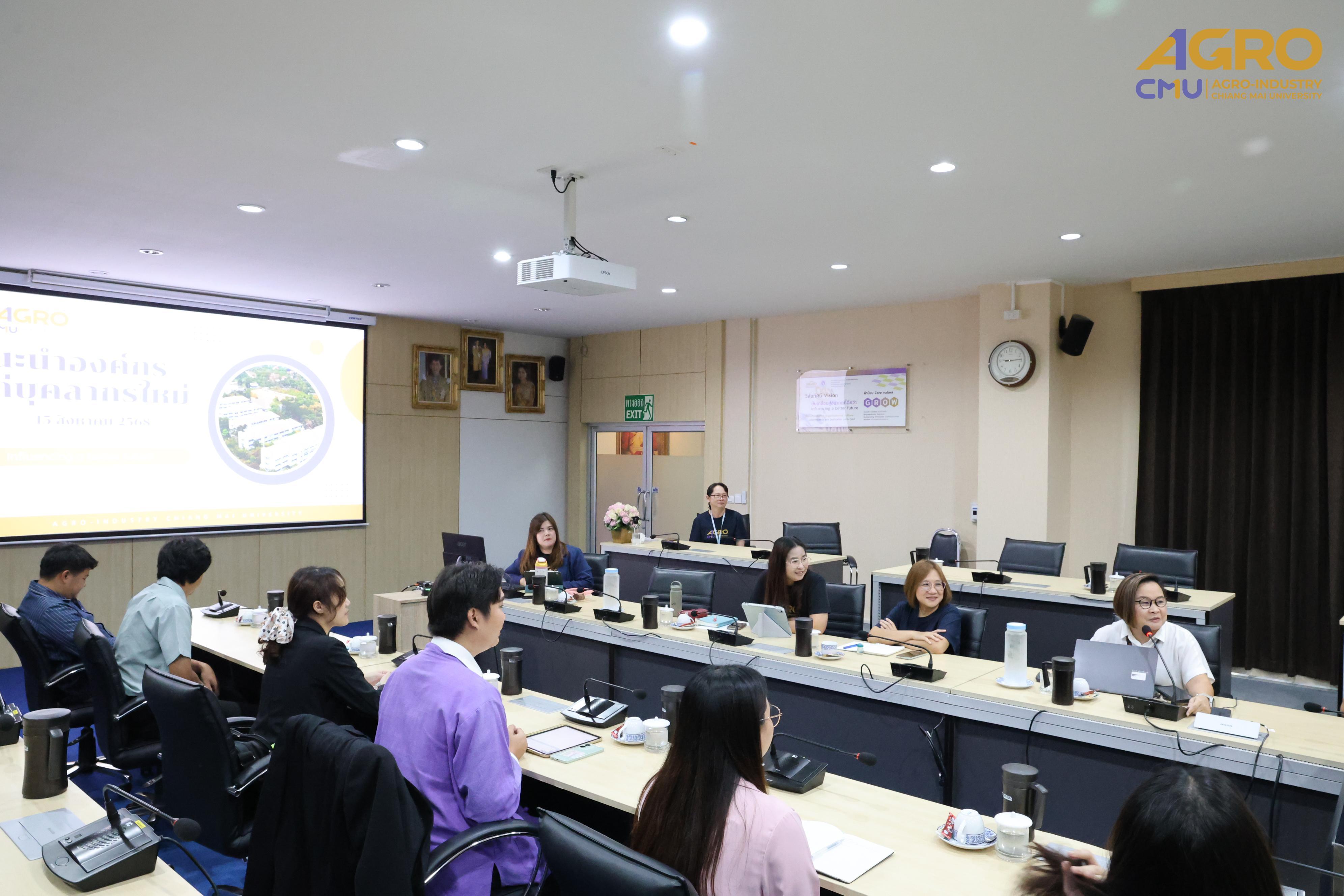 เมื่อวันที่ 15 สิงหาคม 2568 คณะอุตสาหกรรมเกษตร ได้จัดกิจกรรมแนะนำองค์กรสำหรับบุคลากรใหม่ นำโดยนางสาวปิยะนุช สวัสดี เลขานุการคณะอุตสาหกรรมเกษตร , หน่วยทรัพยากรบุคคล งานบริหารทั่วไป มาให้ข้อมูลเบื้องต้น เพื่อเป็นการแนะนำให้บุคลากรใหม่ ได้รู้จักคณะฯ ในด้านต่าง ๆ มากยิ่งขึ้น อาทิ นโยบาย วิสัยทัศน์ พันธกิจ นโยบายคุณภาพ แผนการดำเนินงานตามตัวชี้วัดต่างๆ รวมทั้งการบริหารจัดการด้านการบริหารงานบุคคล ด้านงานบริหารทั่วไป ด้านสิทธิสวัสดิการต่าง ๆ ด้านการเงิน การคลังและพัสดุ ด้านสารสนเทศและโสตทัศนศึกษา รวมทั้งถ่ายทอดจรรยาบรรณพนักงานมหาวิทยาลัย นโยบายความรับผิดชอบต่อสภาพแวดล้อมและชุมชน แนวปฏิบัติการต่อต้านทุจริตและคอรับชั่น คุณธรรมจริยธรรมของผู้ปฏิบัติคณะอุตสาหกรรมเกษตร และมหาวิทยาลัยเชียงใหม่ แนวปฏิบัติ Dos & Don't นโยบาย No Gift Policy และระเบียบข้อบังคับที่เกี่ยวข้องในการปฏิบัติงาน ตามที่บุคลากรควรได้รับทราบเพื่อประโยชน์ของตนเอง และเพื่อประโยชน์ในการทำงาน โดยมีบุคลากรใหม่ เข้าร่วมรับฟัง ณ ห้องประชุม 3