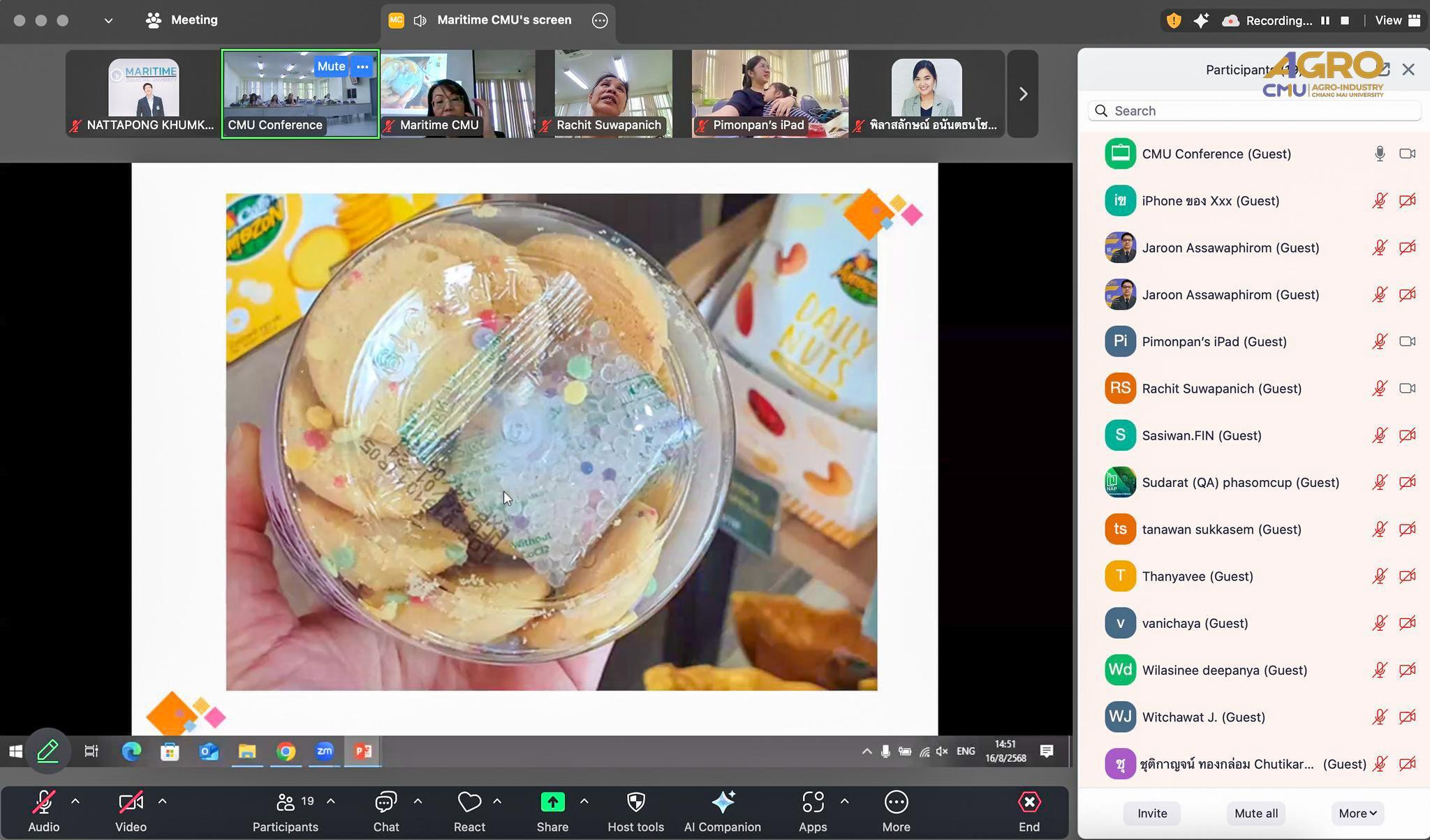 On August 16, 2025, the Faculty of Agro-Industry (Samut Sakhon), Chiang Mai University, organized a special lecture titled “Innovative Active and Intelligent Packaging” under the New Breed Graduate Production Project. The event took place from 09:00 to 16:00 at the Smart Classroom, Faculty of Agro-Industry (Samut Sakhon), and was also broadcast live via Zoom. The lecture was honored by Assoc. Prof. Dr. Teeranan Jenjaratsakul from Jenjaras Group as the keynote speaker. He shared advanced knowledge on modern packaging technologies with students in the program and other interested participants, focusing particularly on packaging innovations that are expected to play a significant role in the future.This activity was part of Course 2: Adding Value to Food Products through Technology and Innovation, aimed at enhancing participants’ knowledge and skills in applying modern technologies to support the sustainable development of the food industry.