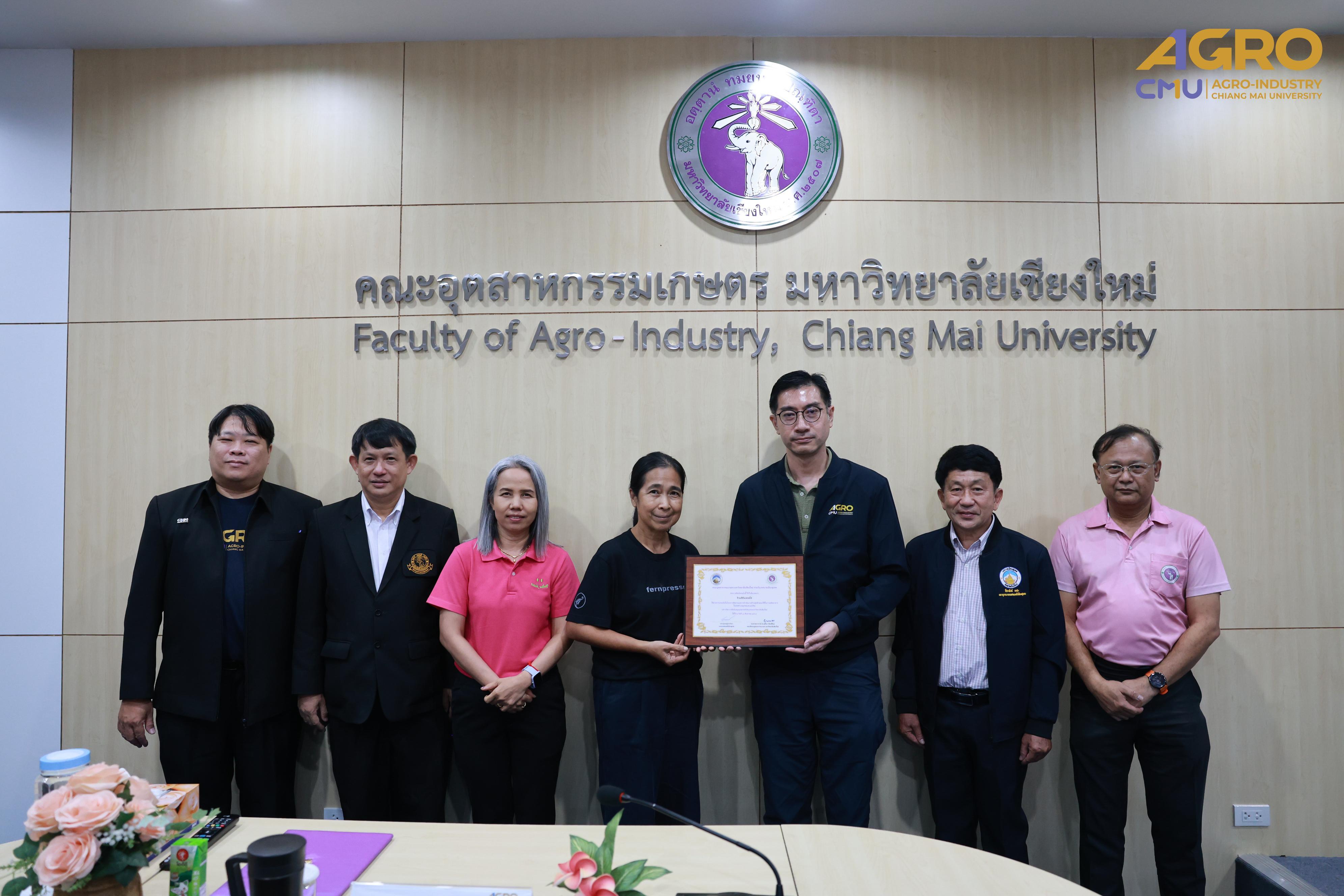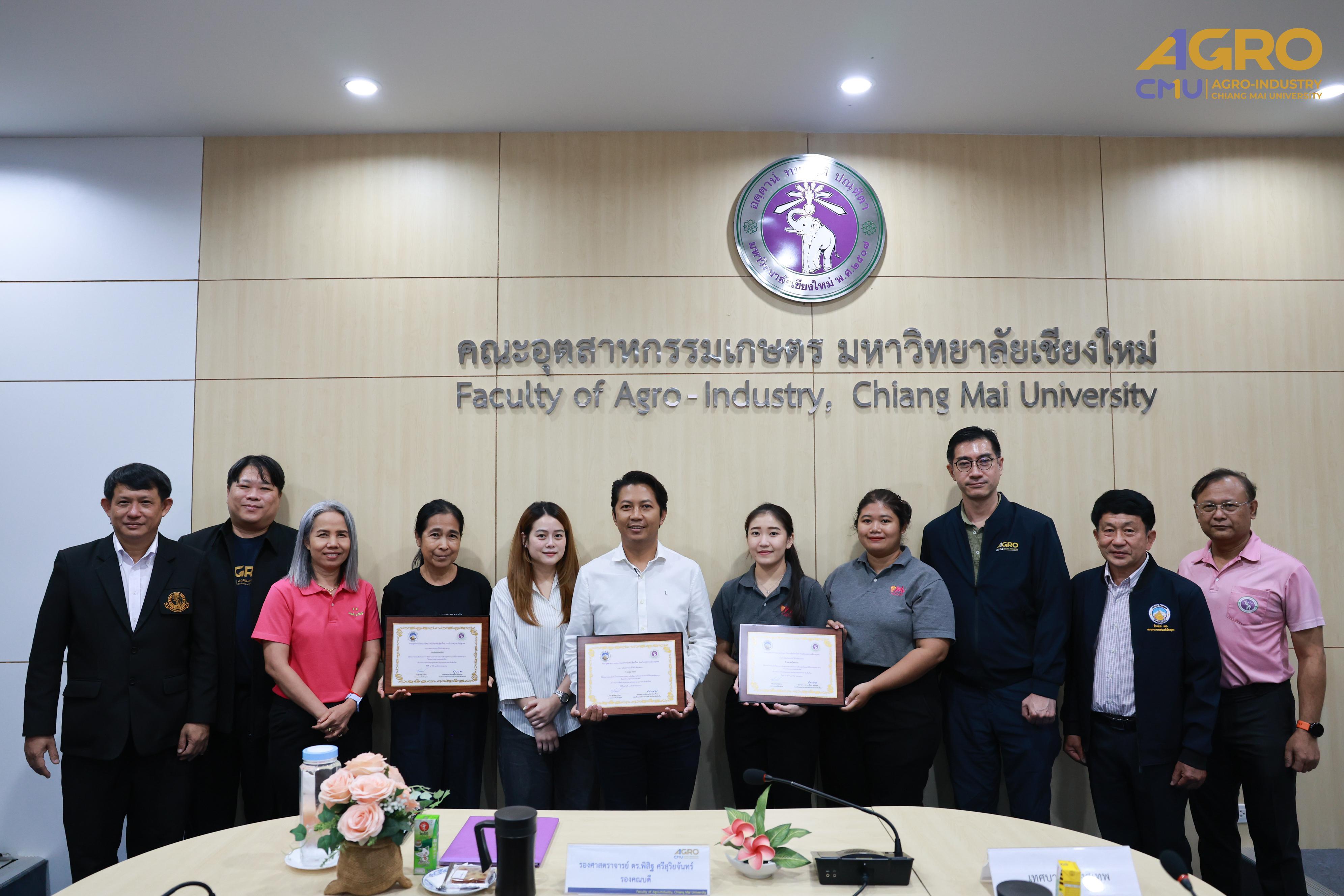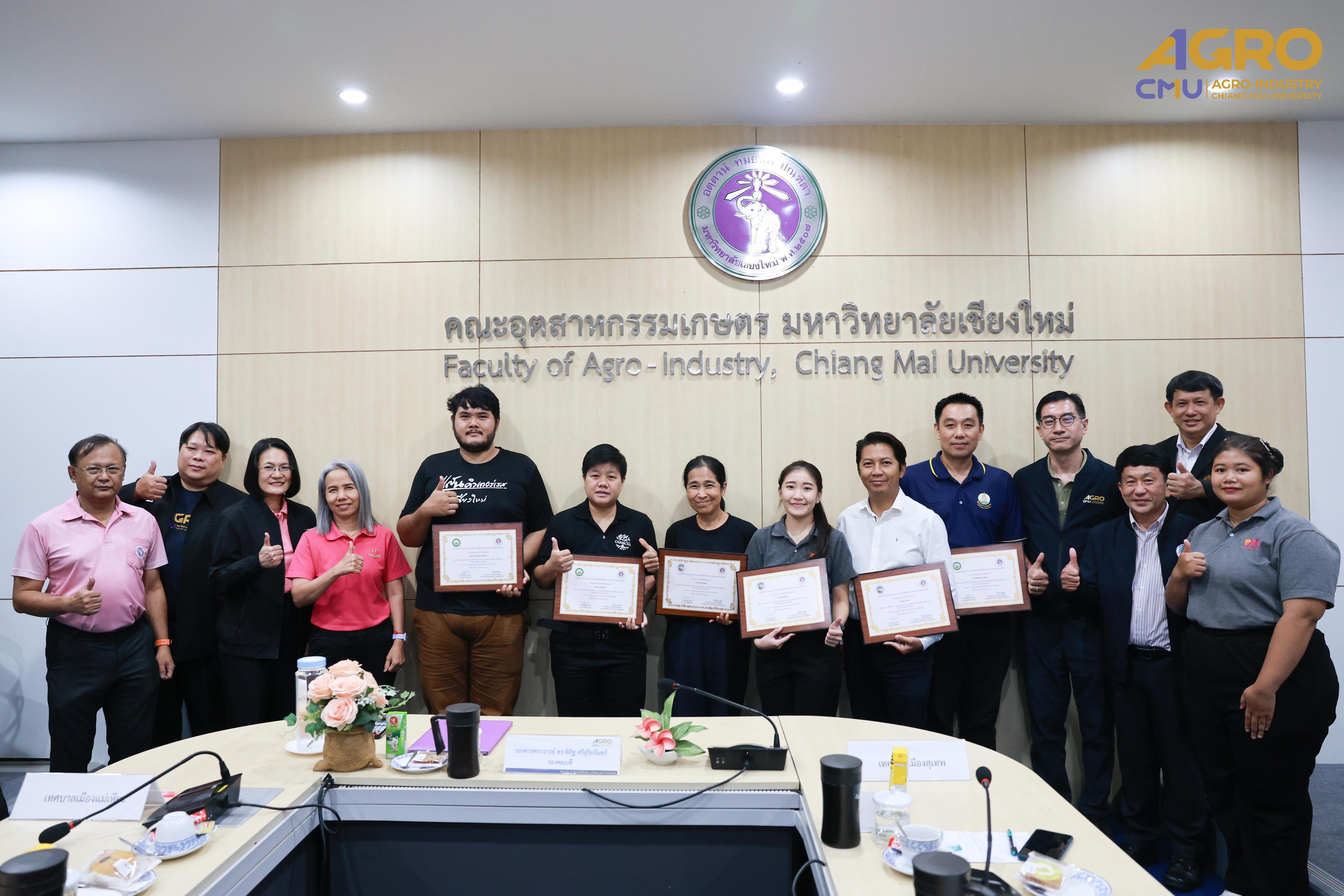 On August 19, 2025, the Project on Monitoring Good Hygiene Practices in Food Production in Suthep and Mae Hia municipal areas organized a certificate presentation ceremony for participating restaurants and food stalls. The event was held at Meeting Room 3, 2nd Floor, Faculty of Agro-Industry Office Building, Chiang Mai University, from 1:30 to 3:00 p.m.