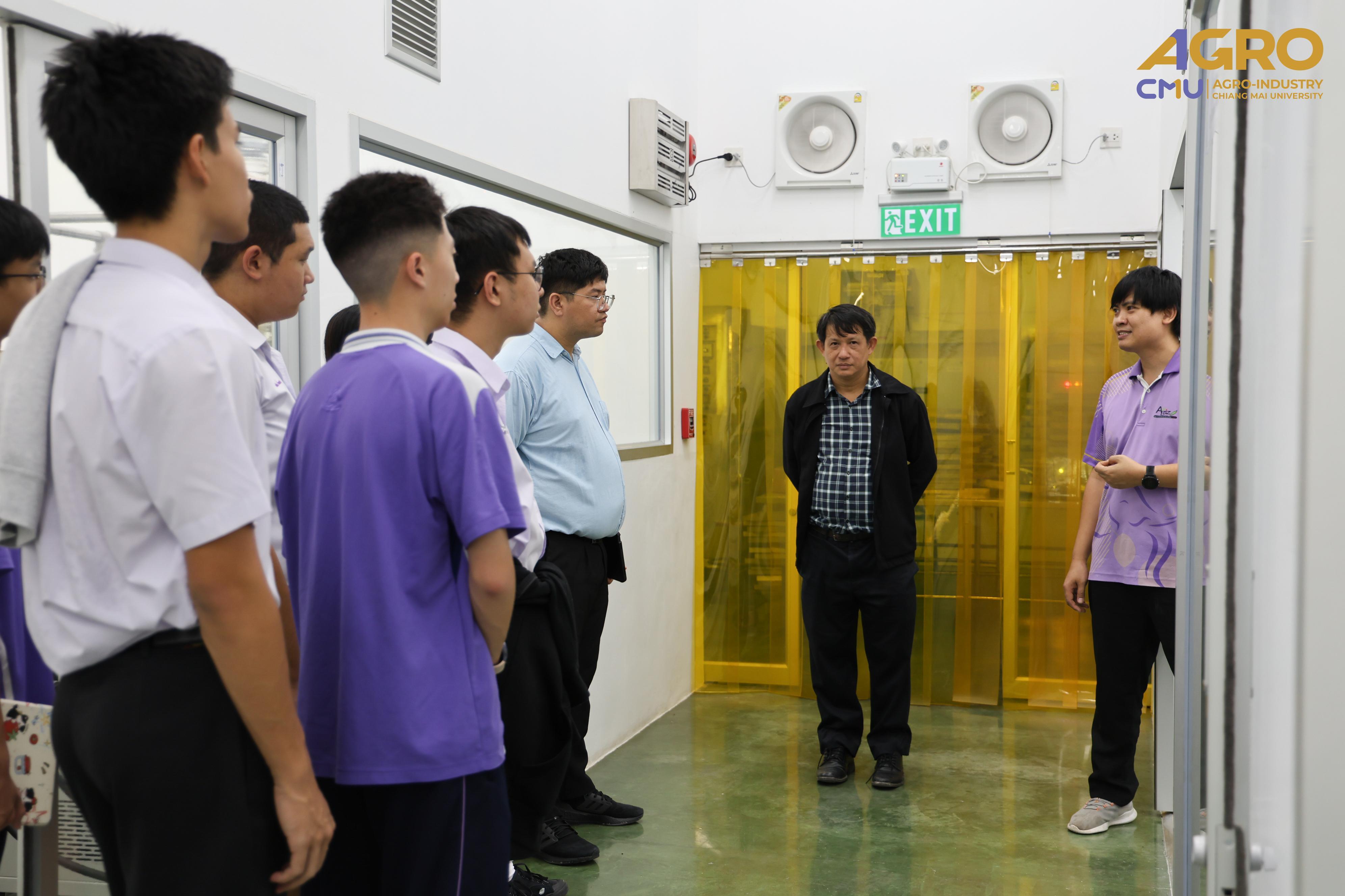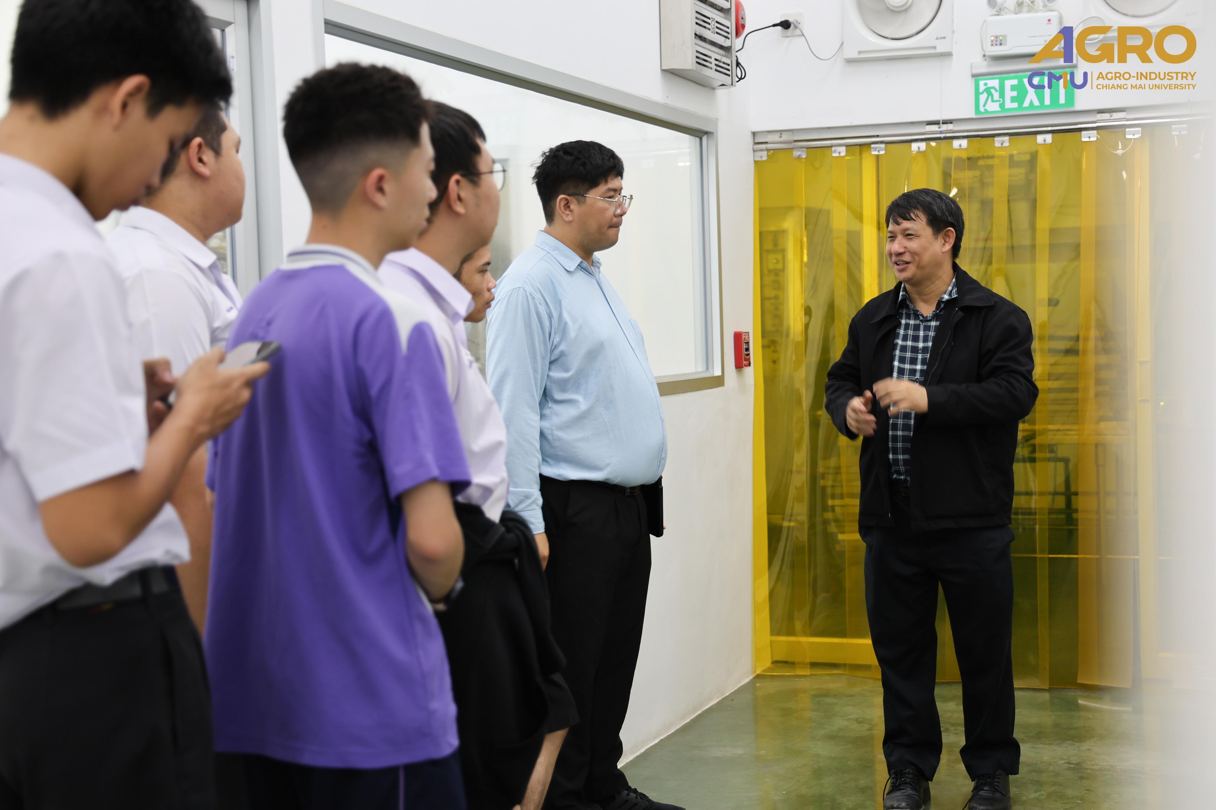 The visit was honored by Asst. Prof. Supavej Maniyom, Ph.D., Head of the Division of Food Engineering, who guided the group through various facilities. He provided insightful knowledge on food production processes, food processing machinery, and the department’s teaching and learning approaches. The group also had the opportunity to tour laboratories and other learning spaces.