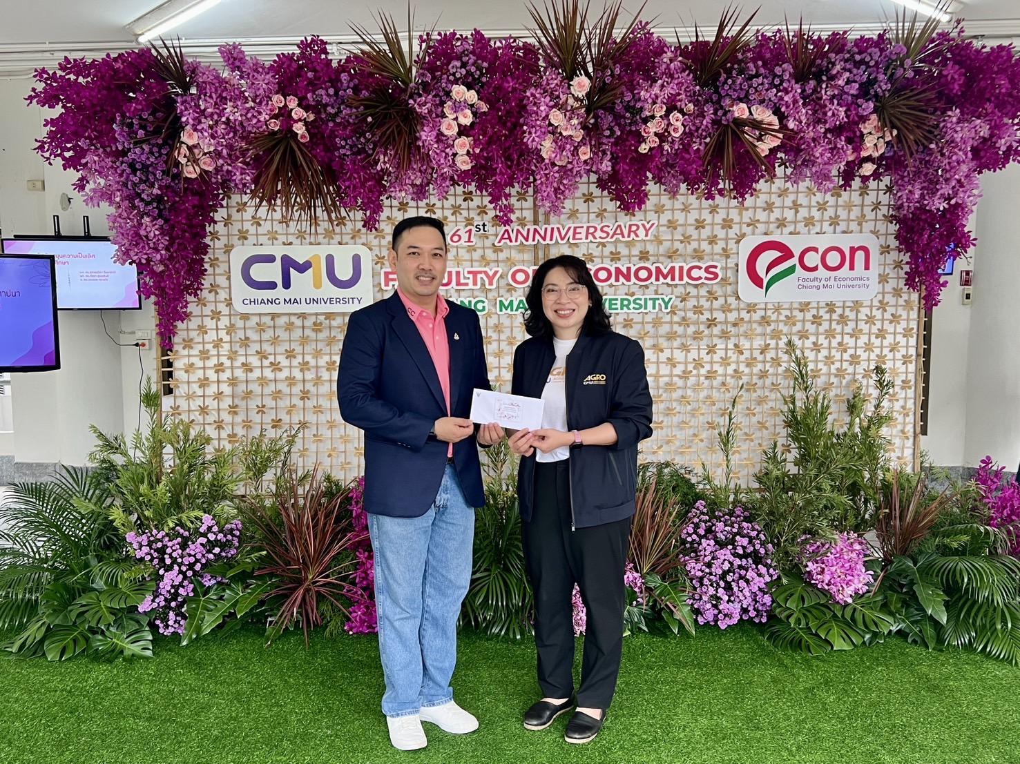 On August 27, 2025, Assistant Professor Dr.Churairat Moukamnerd, Assistant Dean of the Faculty of Agro-Industry, Chiang Mai University, extended congratulations to the Faculty of Economics on the occasion of its 61st Anniversary. On this occasion, she also made a contribution to the Faculty of Economics Development Fund. The contribution was graciously received by Assistant Professor Dr. Pithoon Thanabordeekij, Associate Dean of the Faculty of Economics, at the Lifelong Learning Meeting Room, Building 3, Faculty of Economics, Chiang Mai University.