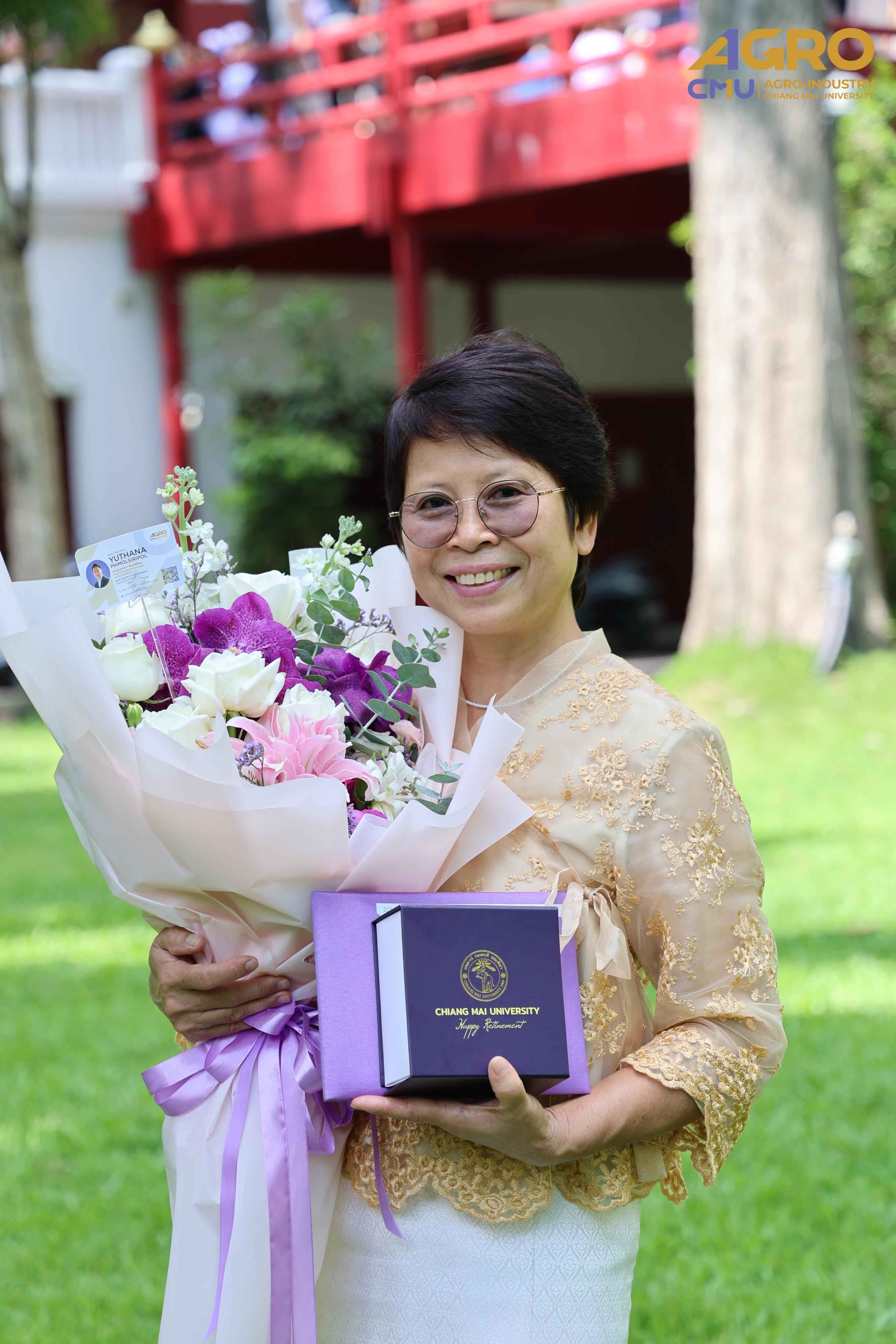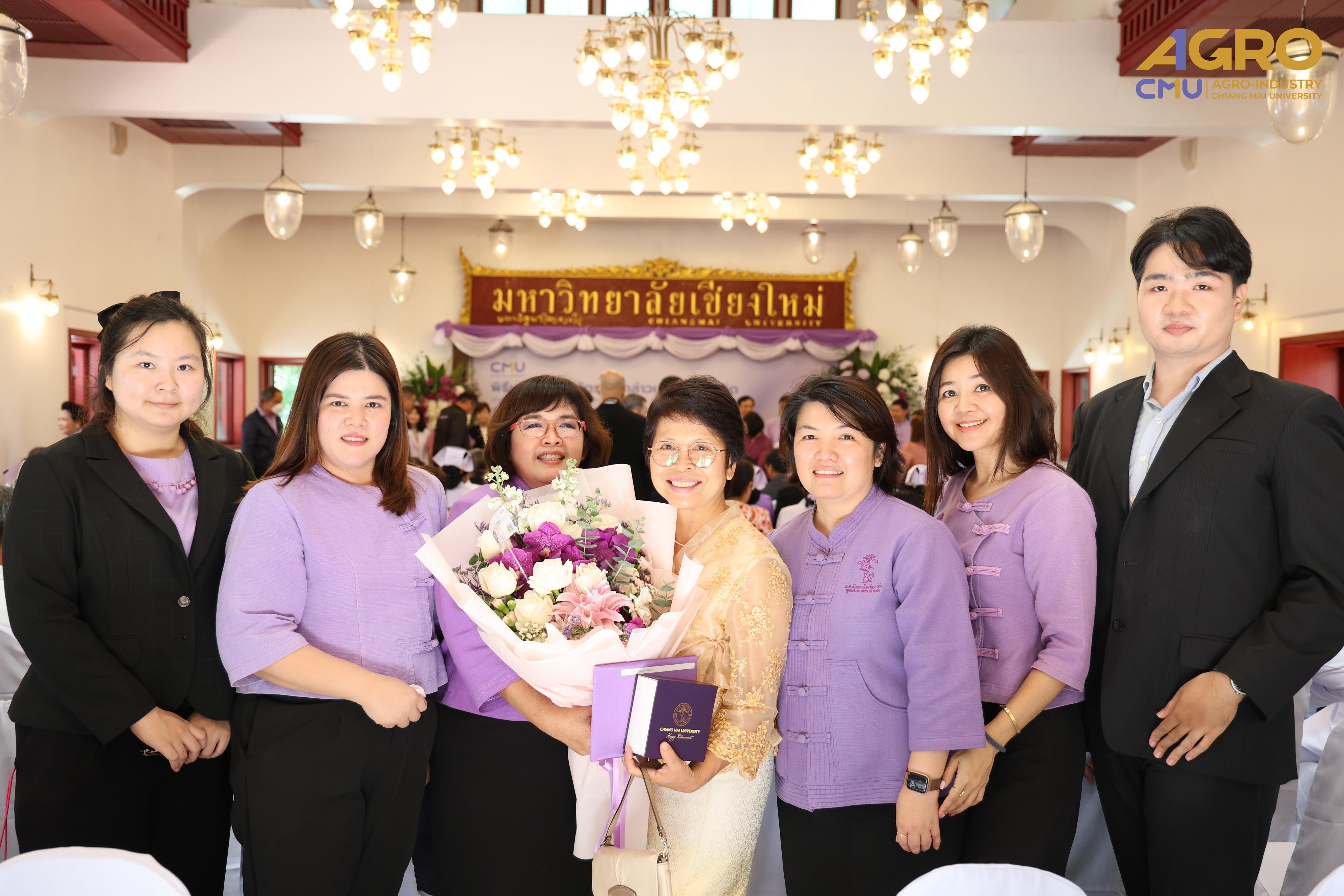 This year, the Faculty of Agro-Industry proudly honors Ms. Sangwan Wannakul, who has reached her retirement, in recognition of her dedication, perseverance, and tireless contributions to the growth and development of Chiang Mai University throughout her years of service. The ceremony took place at the Dhamma pavilion, Chiang Mai University.