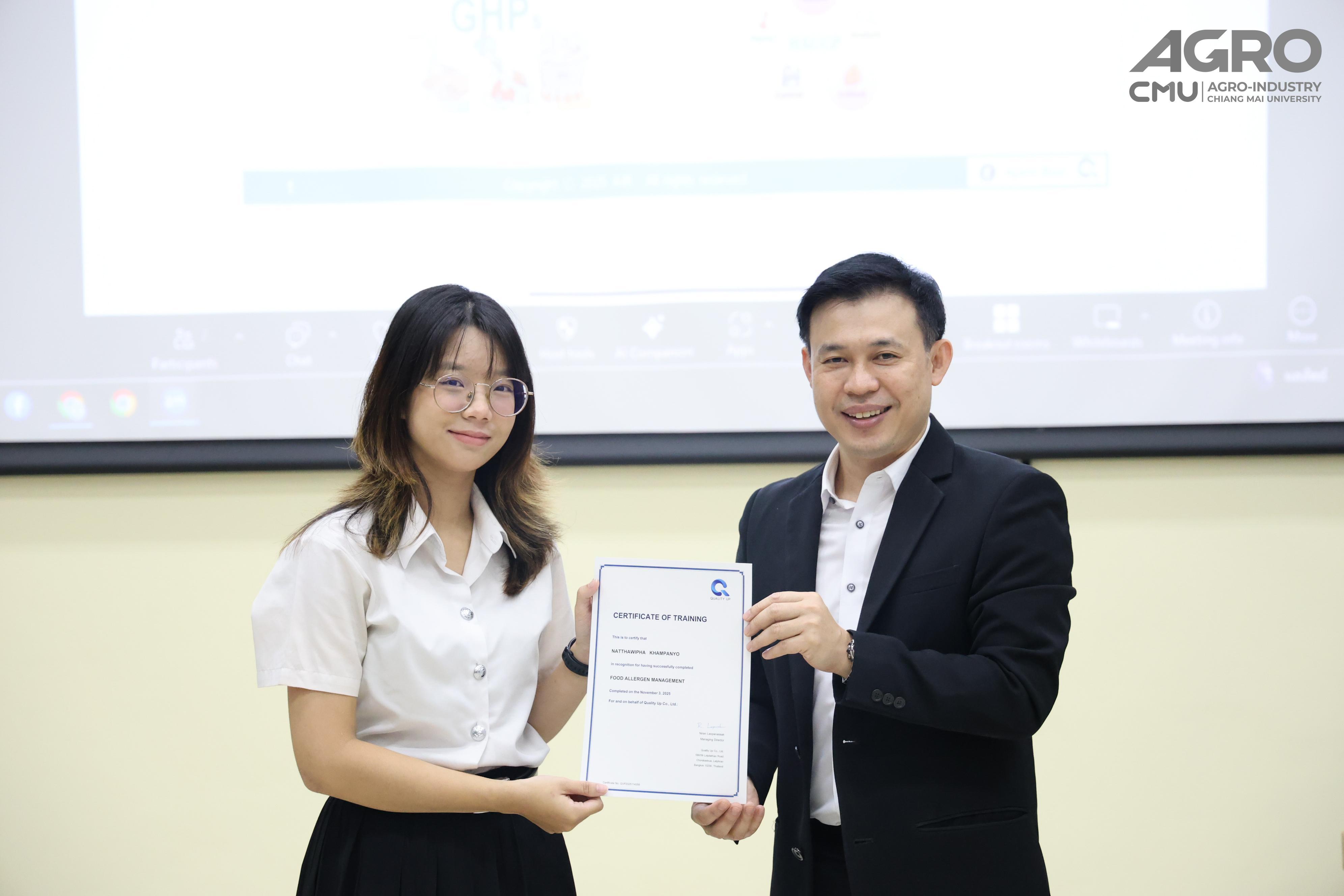 The Faculty of Agro-Industry, Chiang Mai University organized a certificate training program on“Good Hygiene Practices (GHPs) and Hazard Analysis and Critical Control Point (HACCP) (Rev.2022)”and “Food Allergen Management.”