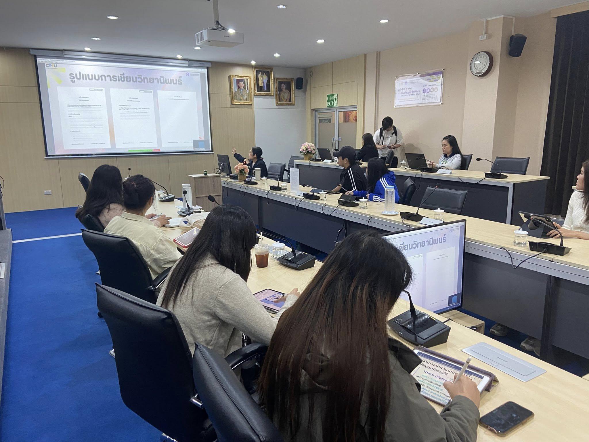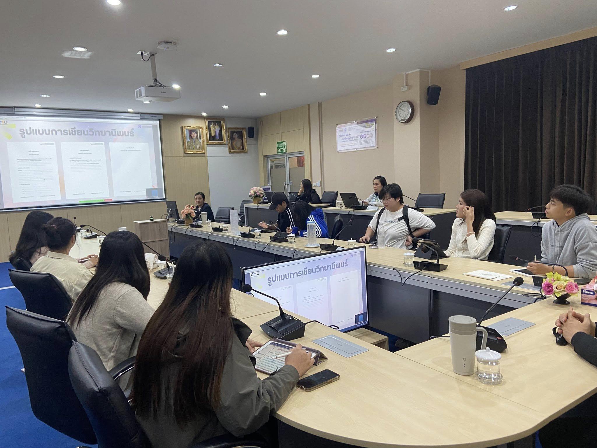 This activity was designed to provide students with knowledge regarding the submission of completed theses/dissertations, the writing of 2 styles of theses/dissertations, and the processes for requesting closure and non-disclosure of theses. Additionally, it aimed to strengthen the relationships among graduate students, faculty staffs, academic service staffs, and facilitating knowledge exchange and addressing issues effectively, guided by an experienced speaker.