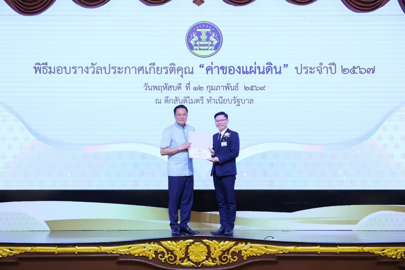 On February 12, 2026, Professor Dr. Pornchai Rachtanapun of the Faculty of Agro-Industry, Chiang Mai University, was honored with a Certificate of Recognition at the “Value of the Land” Awards Ceremony 2024 in the Individual Category for the Promotion of Science and Technology.