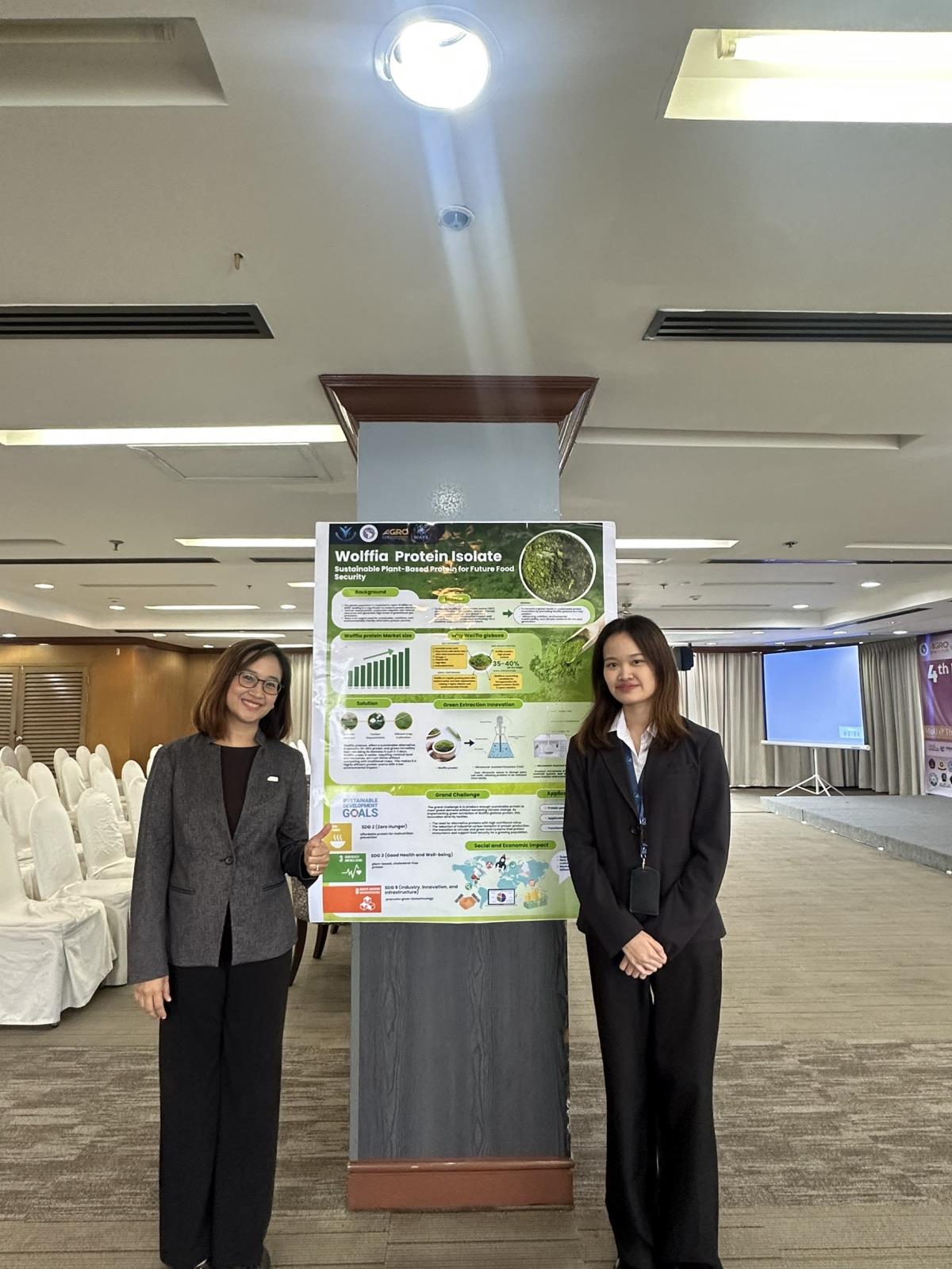 Her project, titled “Wolffia Protein Isolate: Sustainable Plant-Based Protein for Future Food Security,” was selected as a finalist for its innovative concept of sustainable food development. The research focuses on the development of plant-based protein from Wolffia globosa, a fast-growing aquatic plant that requires minimal water and no chemical inputs. This plant serves as an environmentally friendly and sustainable alternative protein source to replace animal protein.